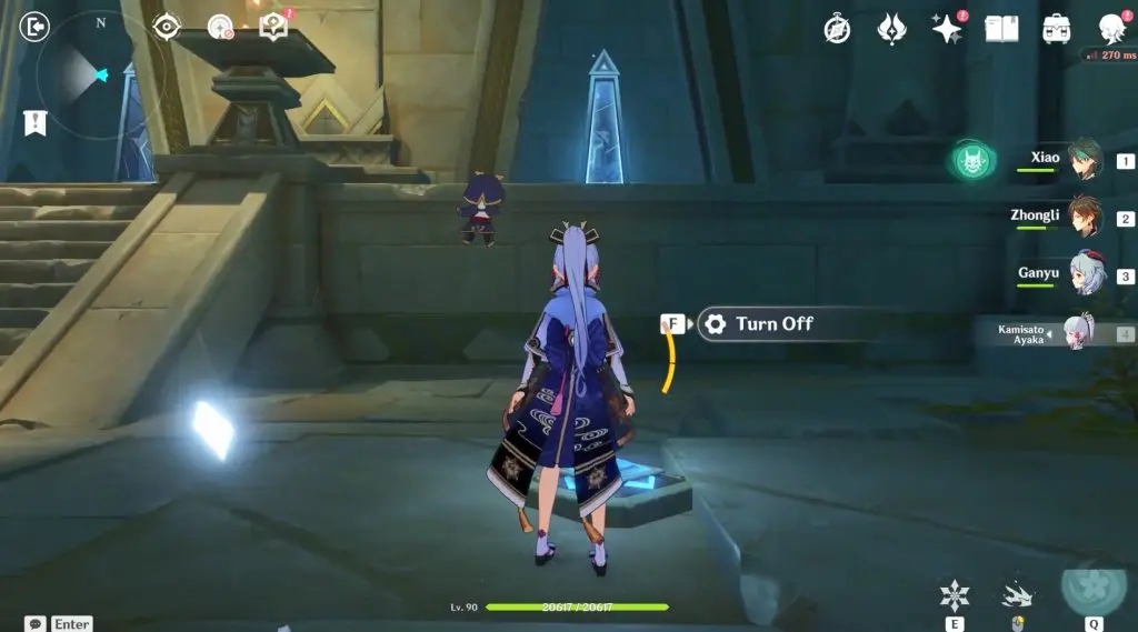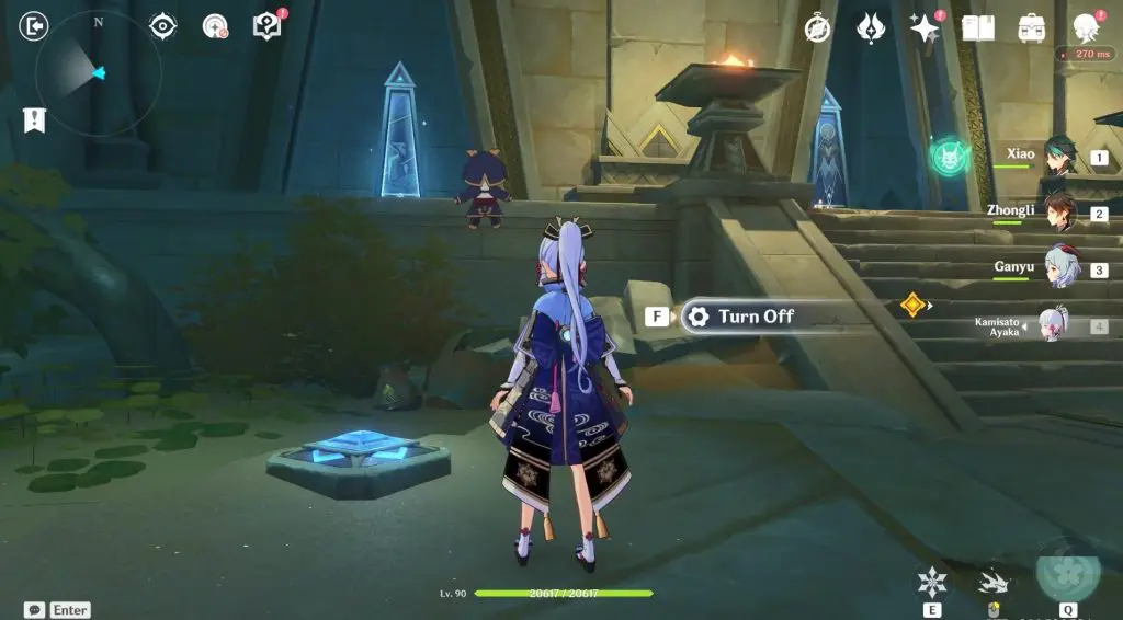 Next, repeat the process so that the picture on the right pillar is identical to the one on the left. To begin, interact with the right switch. Wait until the images on the right pillar start glowing blue and matches with the ones on the left. Immediately turn off the right switch.