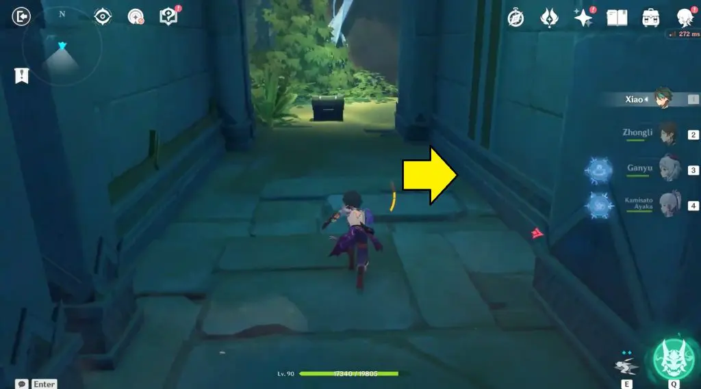 Turn right to find a Common Chest, but this wall will block your way. Turn right to cause the opposite side of the wall to open.