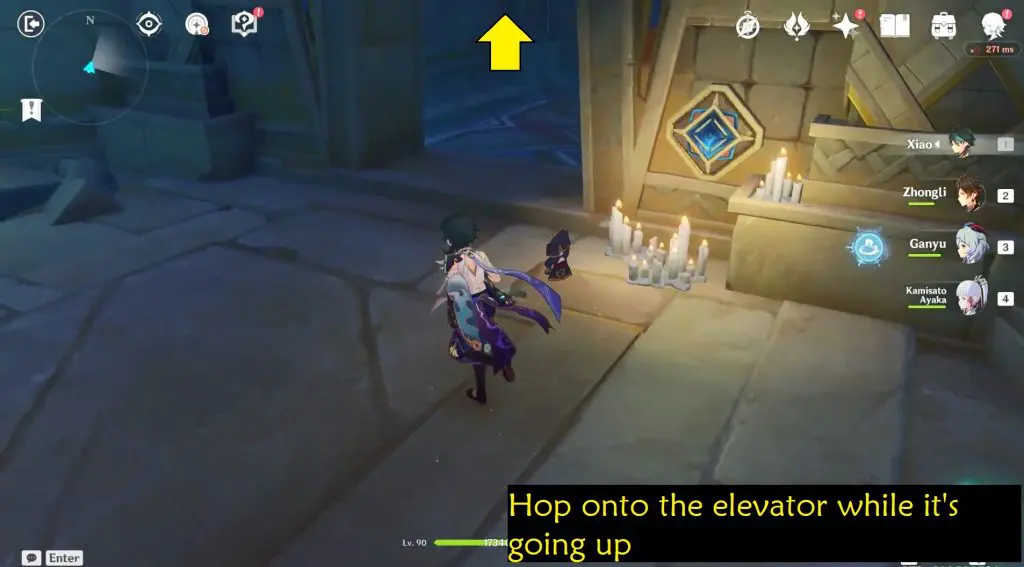 Defeat all the enemies and return to the elevator to find a button on the wall that allows you to control the elevator. Interact with the button to make the elevator go up. Hop onto the elevator while it’s going up to reach the higher floor.