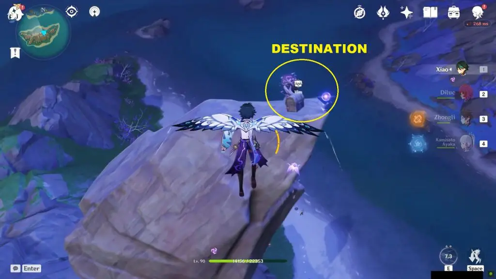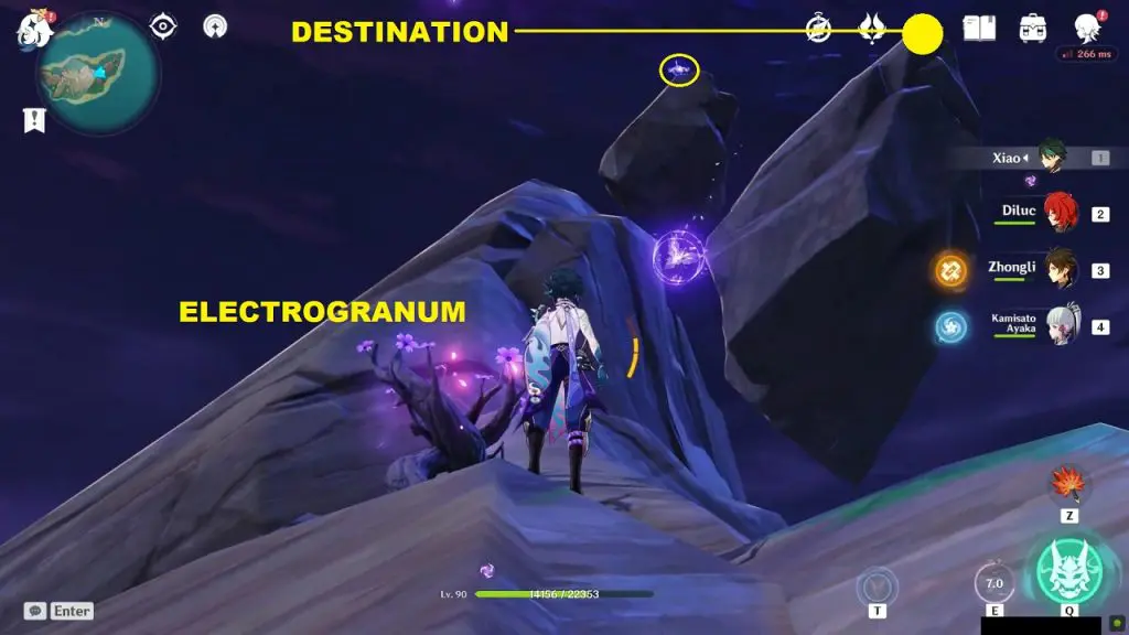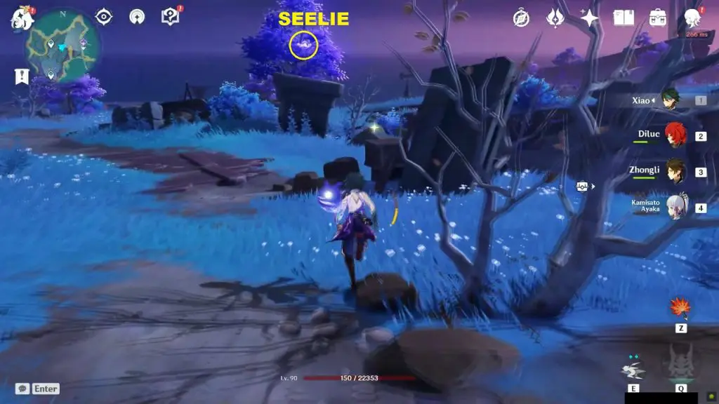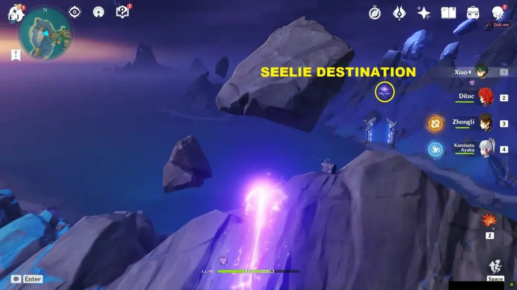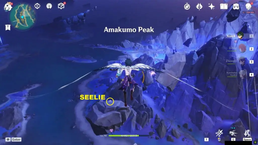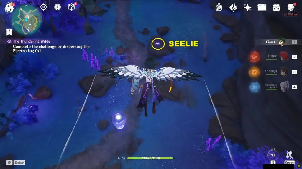 This is very easy to miss Seelie. It’s on a small rock flying high up in the air as shown in the picture below. To reach the Seelie, reach the Electrogranum plant at the top of the mountain on the southwest side of Amakumo Peak. Summon Electrogranum from the plant and use it to jump and reach the Seelie. Chase the Seelie to its destination to get a common chest.