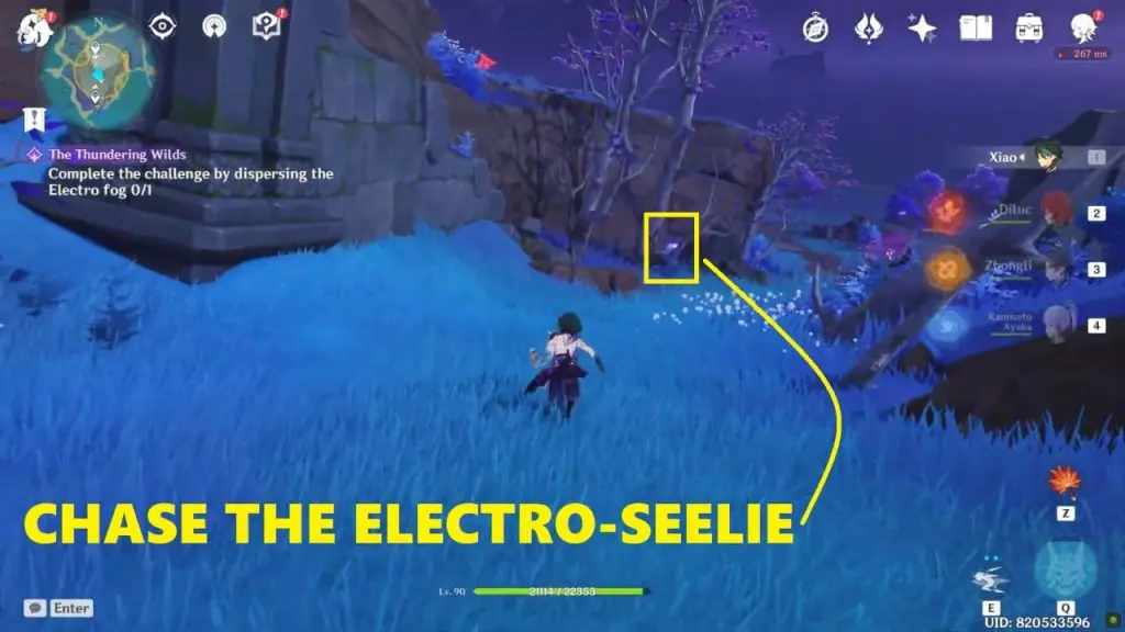 STEP 1 (Chase the electro-seelie): As you go north from the puzzle area you’ll see an electro-seelie near the fort wall. If you get near the electro-seelie, it will move towards the puzzle area. Chase the electro-seelie until it permanently positions itself above a rock (a common chest will spawn then).