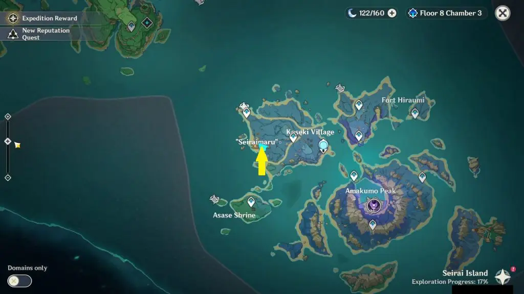 Seiraimaru Ship is on the western edge of Seirai Island as shown in the picture below. Seirai Island was introduced in Genshin Impact 2.1 update on 1st September 2021. On Seiraimaru Ship you will find many puzzles. This article shows how to solve all the puzzles in Seiraimaru Ship.