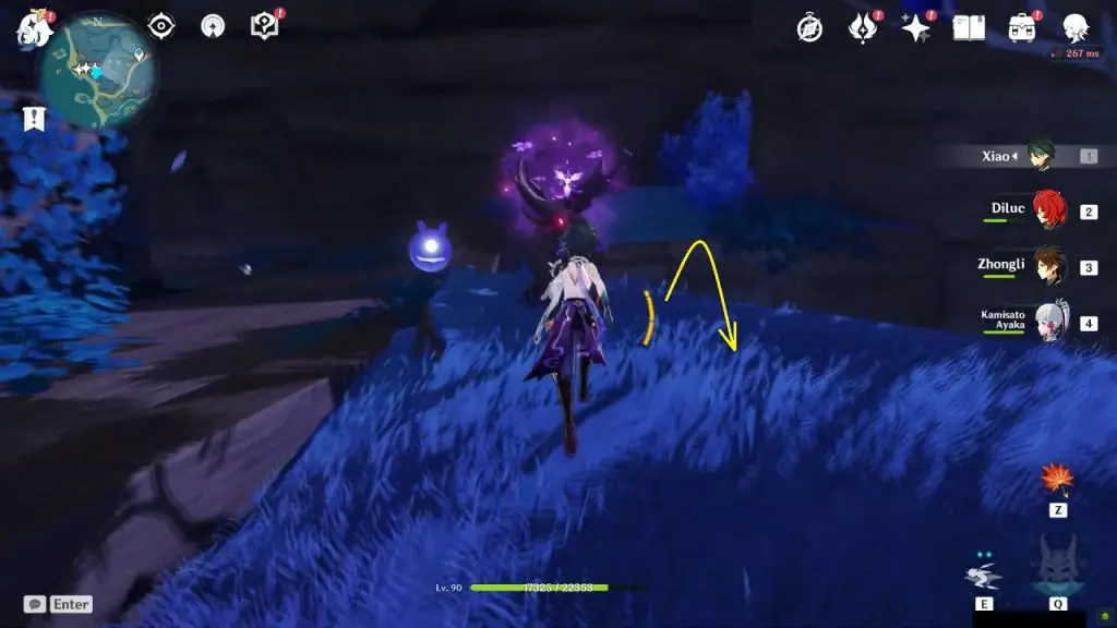 The ship’s wall that broke is on the eastern side. Above it, you will find an electrogranum plant as shown in the picture below. Summon electrogranum and jump down to go inside the ship. Go to the eastern end of the ship. Go inside the thunder barrier and disable the barrier. There you will find a common chest with a Rust worn key. Go to the opposite end of the ship (The western side of the ship), and climb to the upper floor. Use the Rust worn key to open the room. Inside the room, you will find another rotating helm puzzle. Rotate the helm to make the arrows face each other. This will unlock the exquisite chest there.