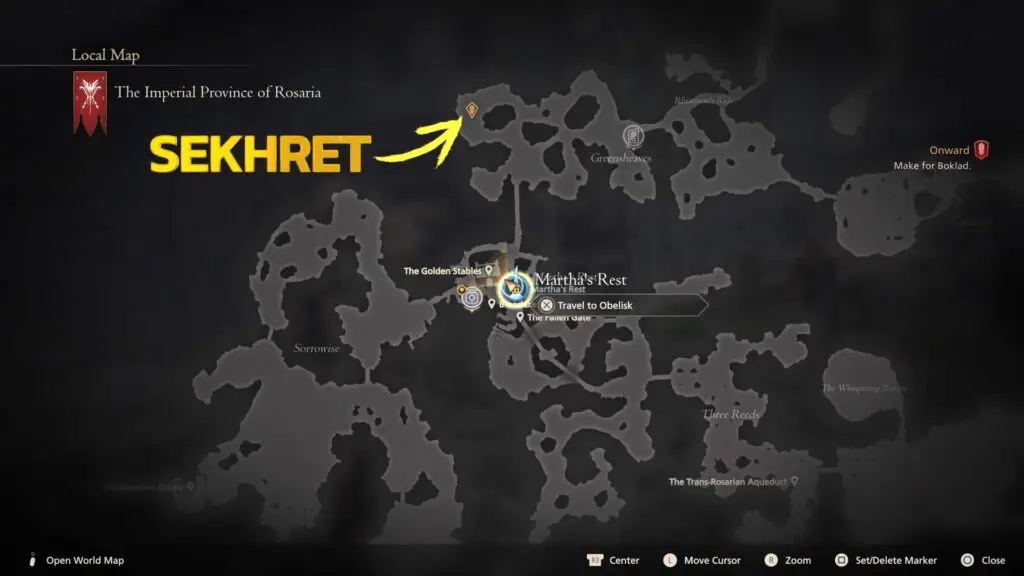 Sekhret may be located in the Greensheaves, west of Rhiannon’s Ride. That implies the best way to get to the conflict is to head north of Martha’s Ride.