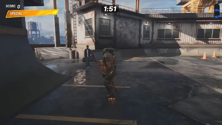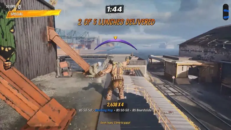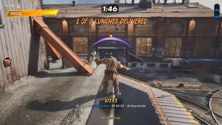 From the starting point, head left side to see a delivery man standing next to a large bag. Skate over to him and pick up the bag.