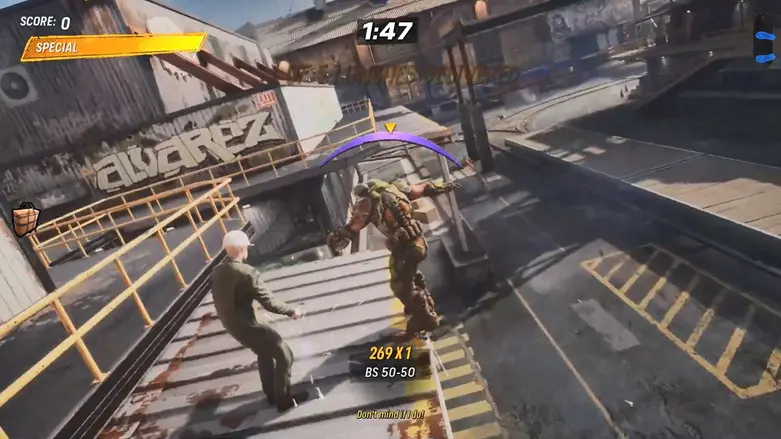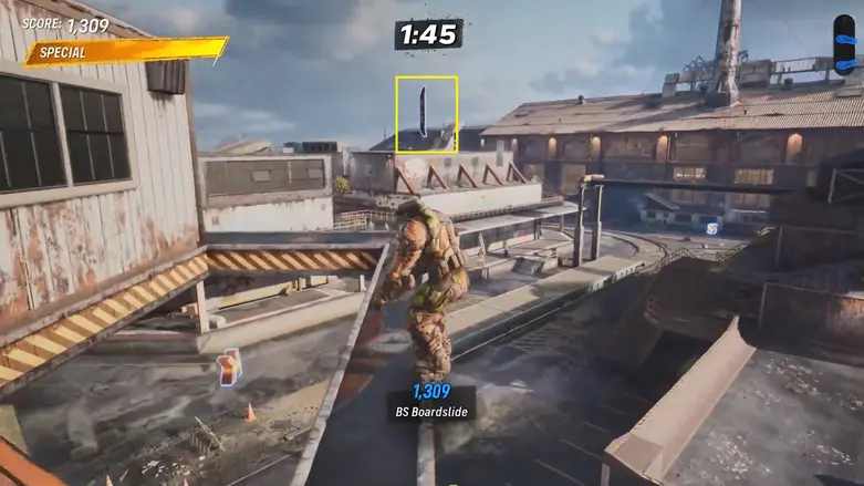 Then, grind the yellow rail to reach the left side of the building, where you’ll find some cash waiting for you.