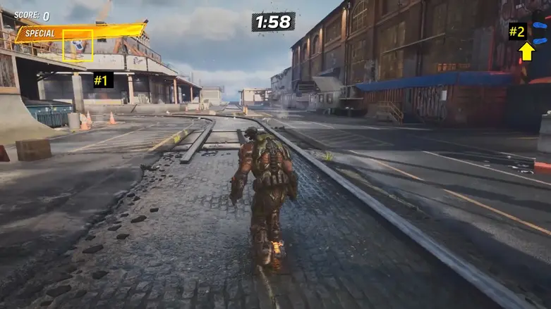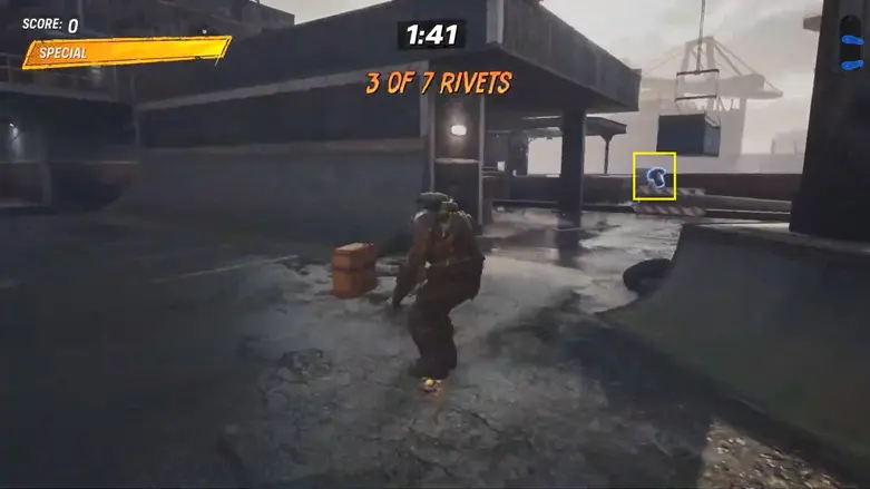 At the starting location, you’ll see two Rivets on each side of the road. One Rivet is on the rail to the left, and the other is above the quarter pipe on the right.