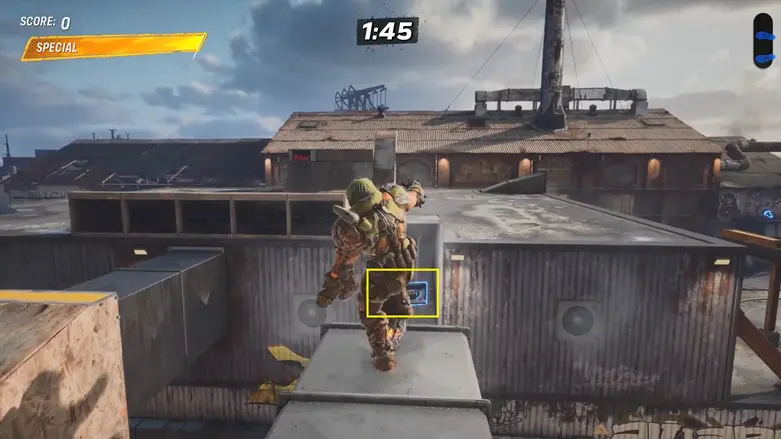 For the next welder, jump onto the nearby building and hop onto the rail. Jump up to the top of the roof and grind along the wall to reach the second welder.