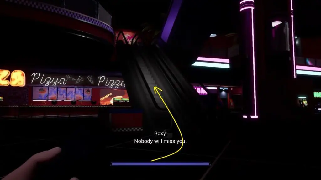 To reach the third floor, climb up the escalator in front of the pizza shop as shown below and turn right. You need to be careful as Chica, Monty, and Roxy are patrolling the route up to the third floor. Also, security bots are roaming in this area as well.