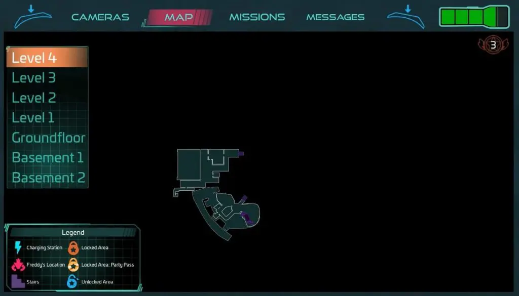 On pressing the button, the stage will go down. Once it stops, simply follow Freddy to the Re-charge station to complete the mission.