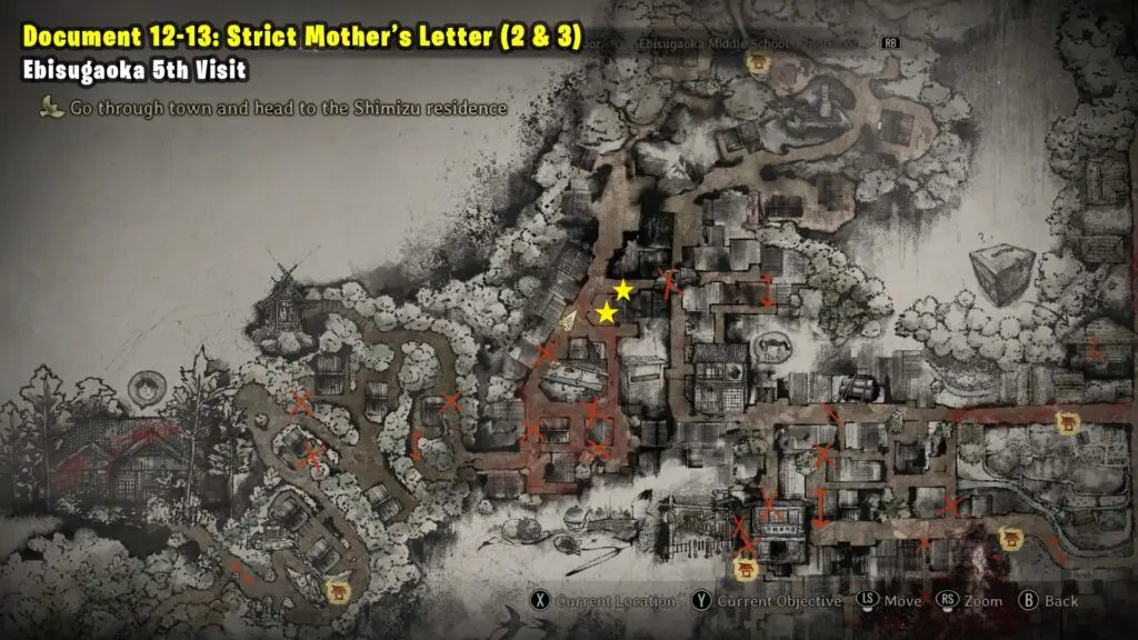 Strict Mother’s Letter 2 is located in front of a house, as indicated on the map. Strict Mother’s Letter 3 is located on the side of the fence of the same house.