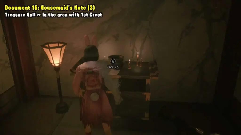 You can find this document while looking for the first crest. Go into the Treasure Hall, then check the first room on the left of the main room.