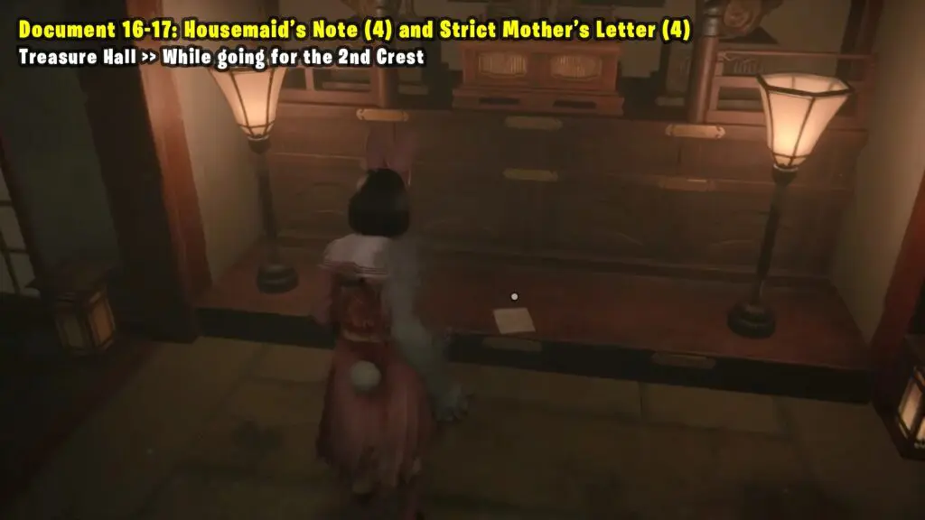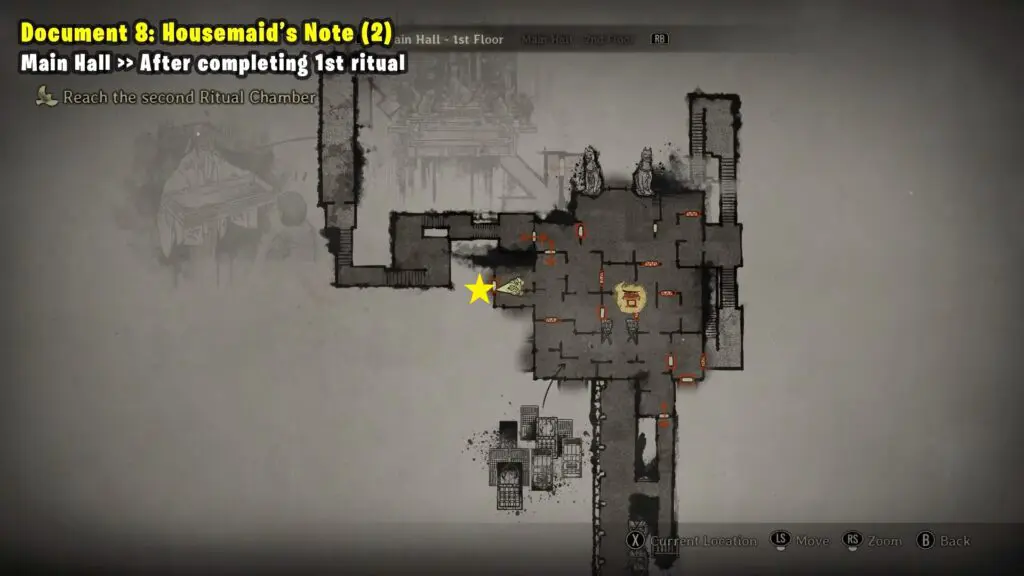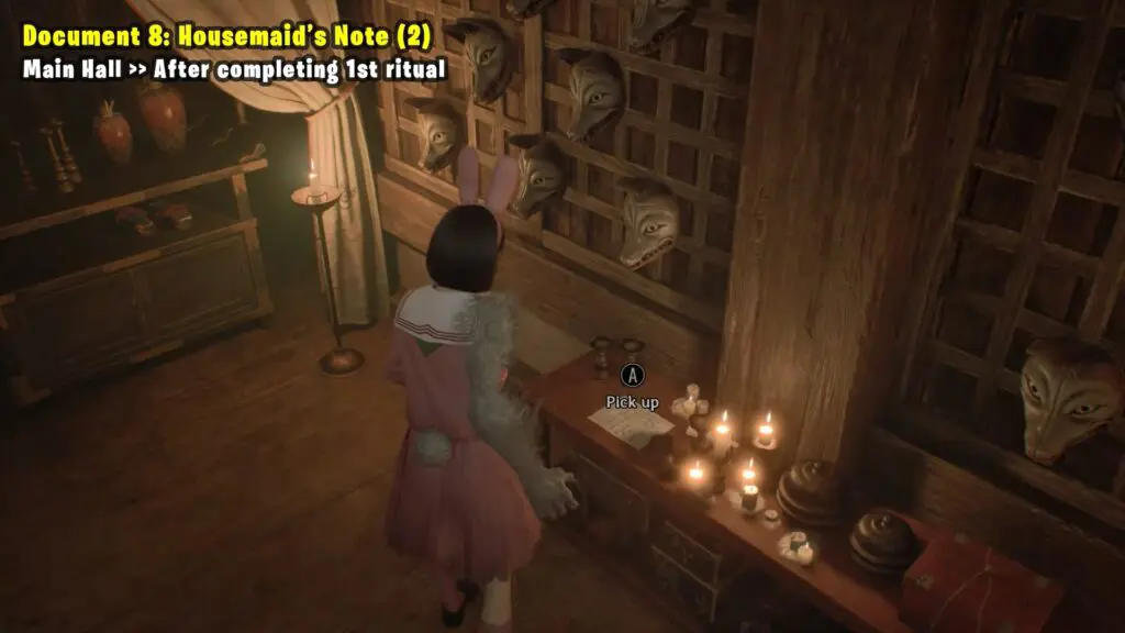 After completing the first ritual and returning to the first floor in the main hall. Refer to the map and open the metal door. Inside, you’ll find the Housemaid’s Note on the table, near an Omamori.