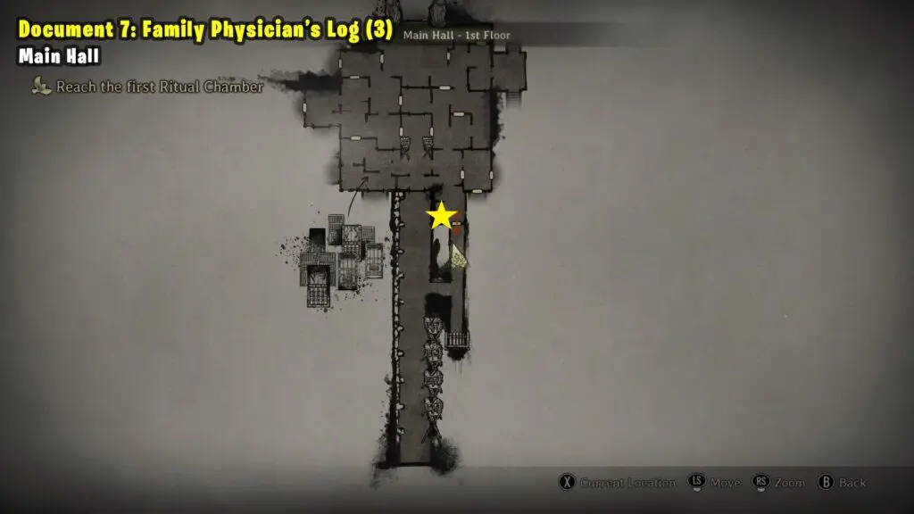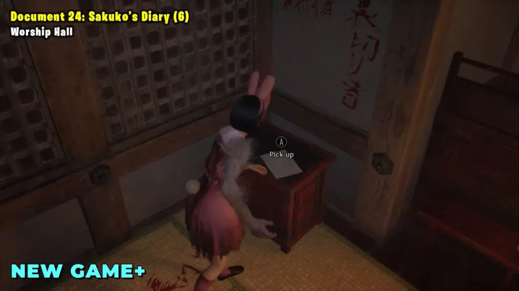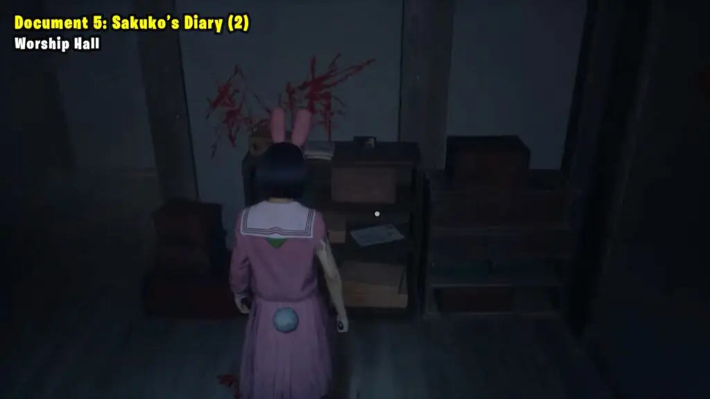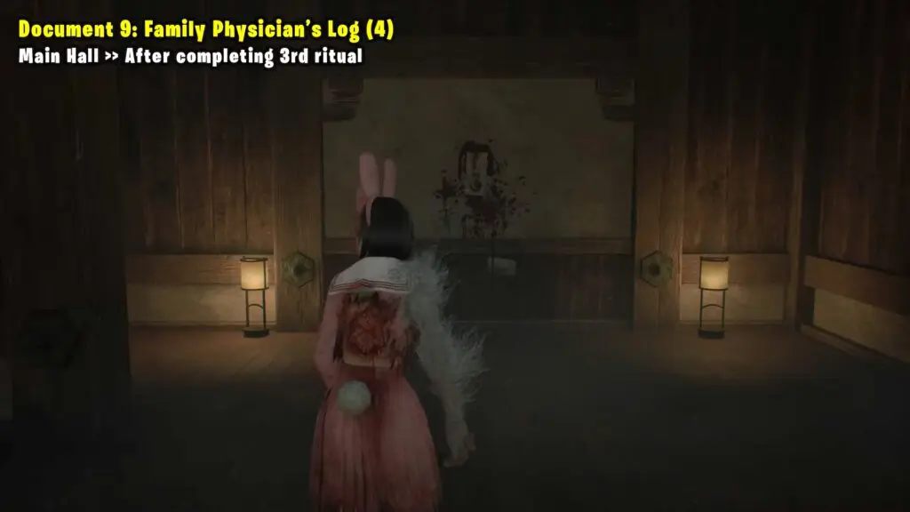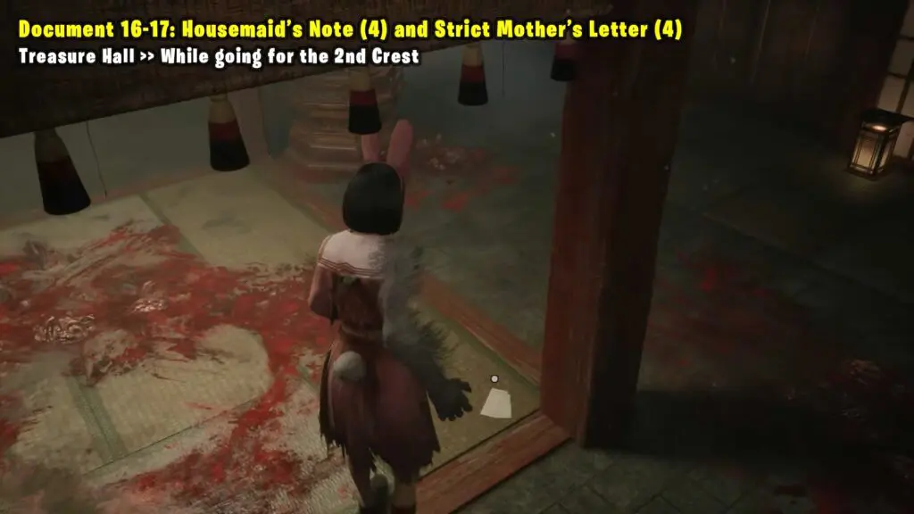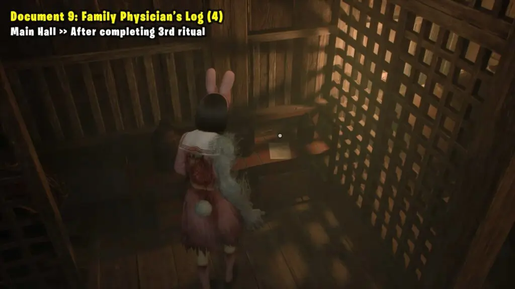 After you finish the third ritual. Go through the wall with blood to enter the secret rooms. Inside, on the left, you’ll find a document.