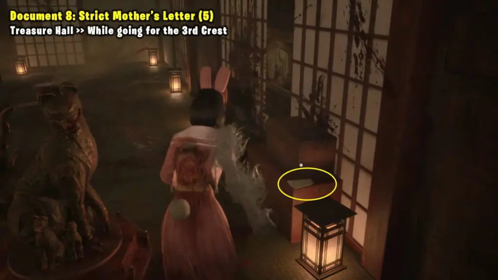 While looking for the third crest, go to the first room where the fox statue will spawn. You will find it on a table on the right side of the same room.