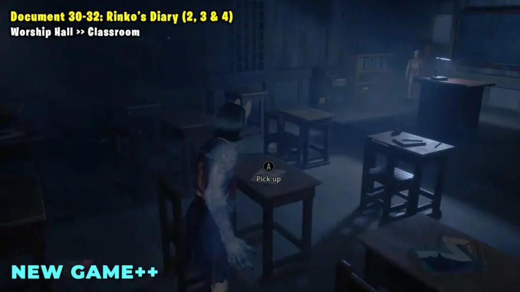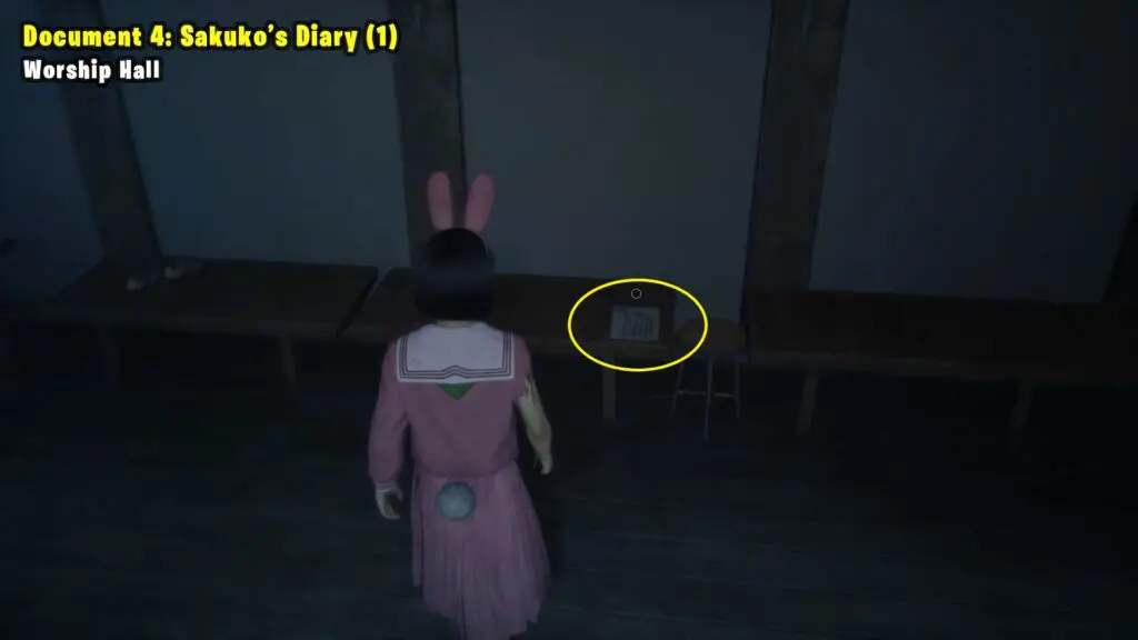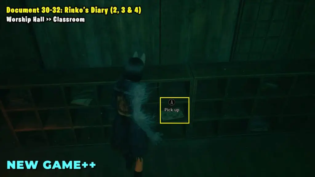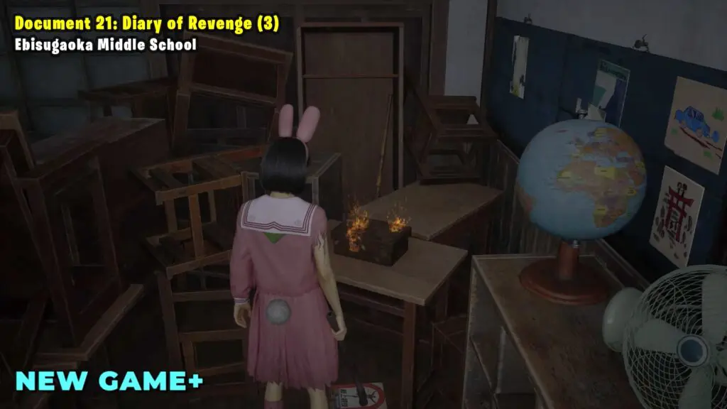 Once you leave Ebisugaoka Middle School, head to the west side and climb through a window into a classroom. Inside, you’ll find the document in a box on a table.
