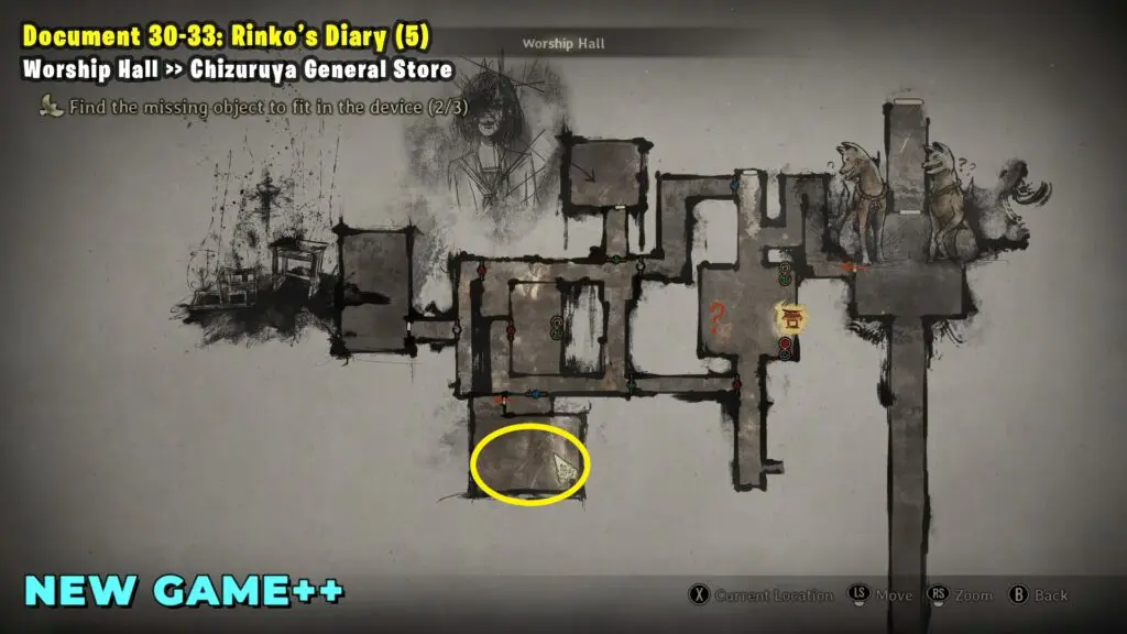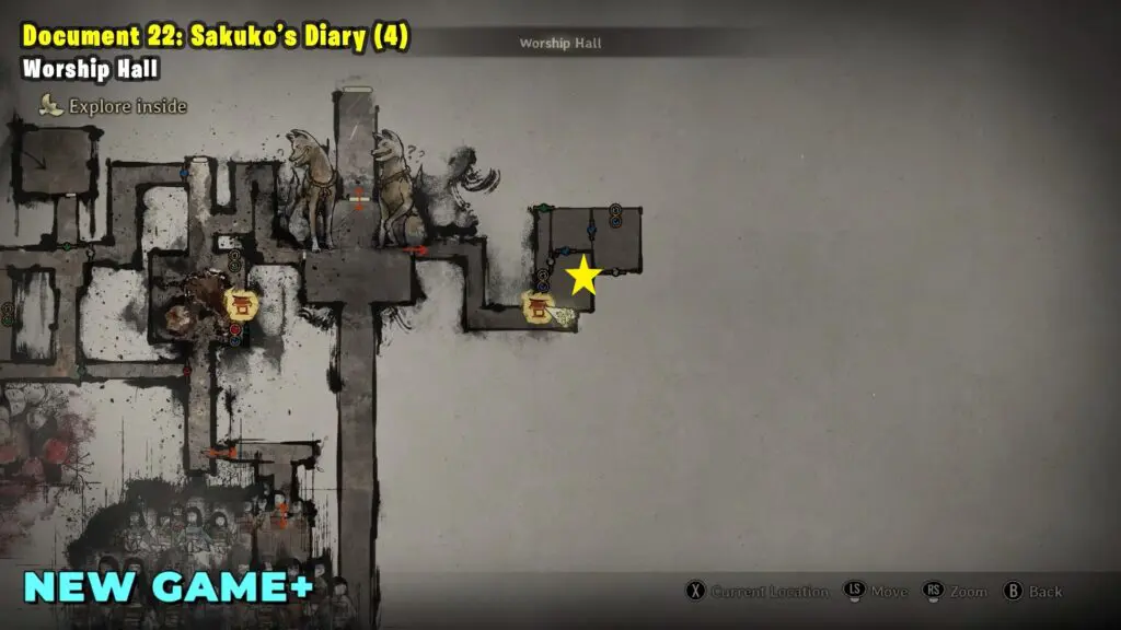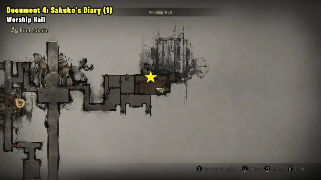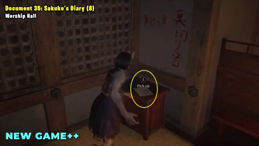 Go to the east side of the Worship Hall. In the room with the Hokora Shrine, you’ll find the document.