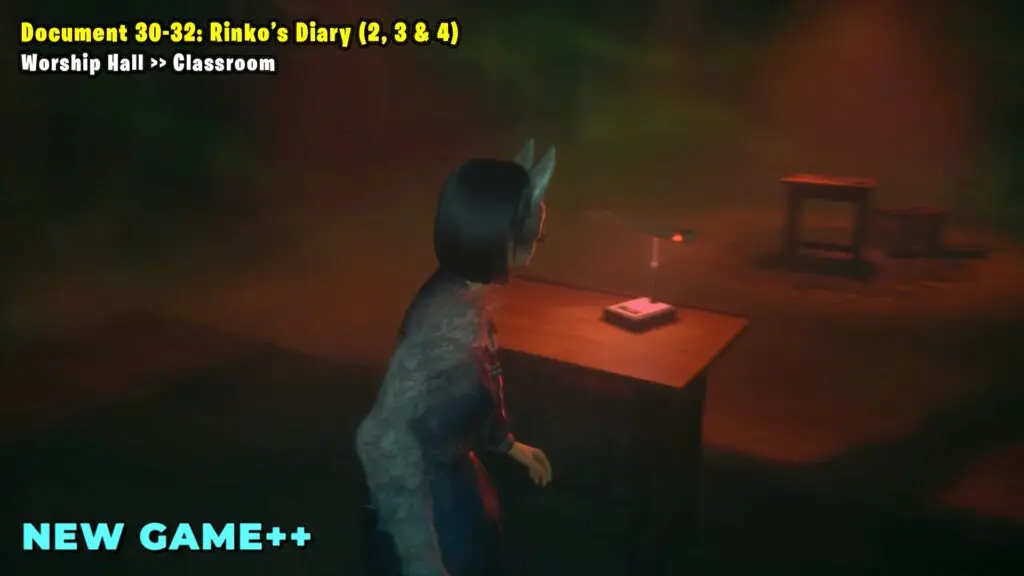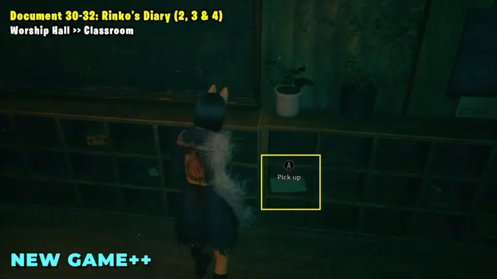 Rinko’s Diary-3: Use the desk lamp in the classroom to turn the room red. Then, you’ll find this on a shelf on the eastern side of the room.