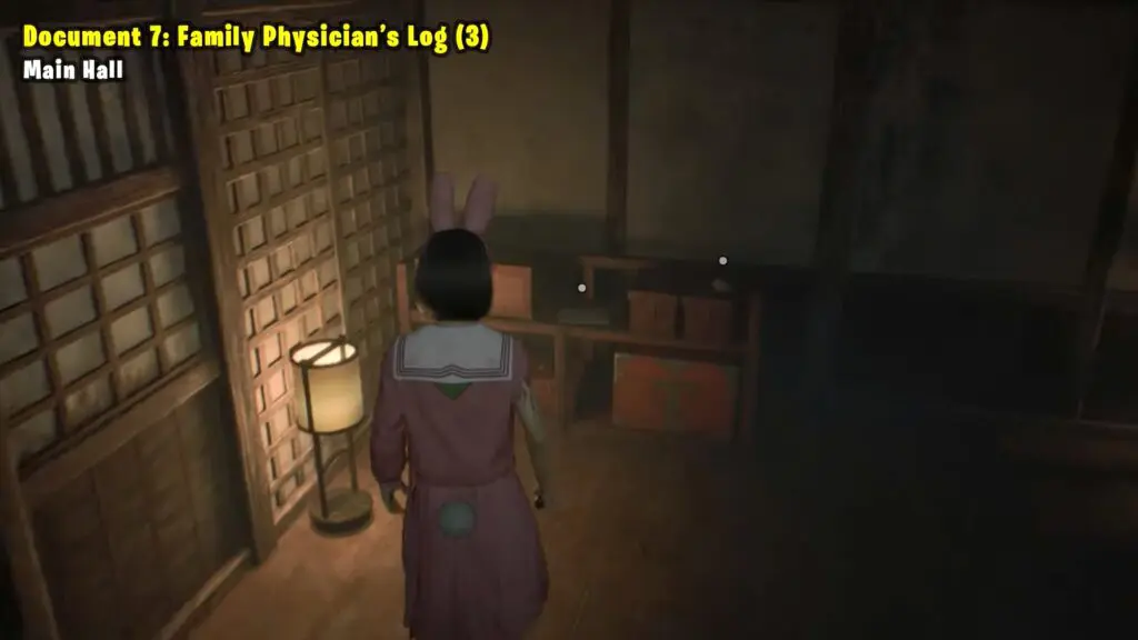 After opening the first door in the F1 of the Main hall, turn left to find the Family Physician’s Log on a bench.