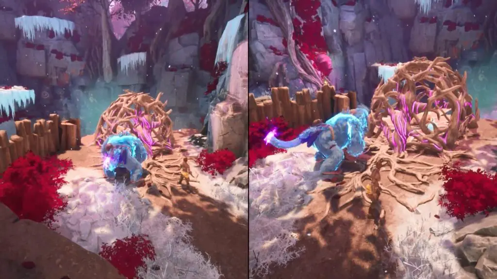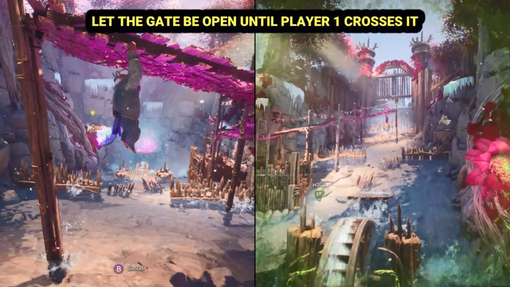 As players move through the Silly Monkeys level, they will reach the entrance to the Monkey King’s home. First, transform Mio into her Ape form and Zoe into her tree form.