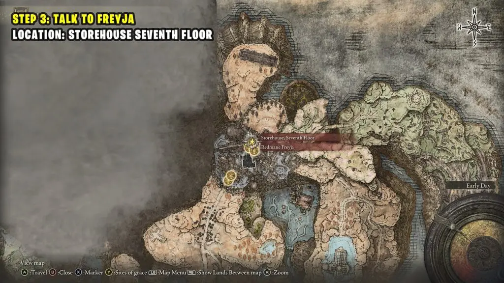 Talk to Freyja near the Three-Path Cross Grace Site as shown in the picture below. If she is no longer there, then you will find her on the seventh floor of Shadow Keep (Refer to Step 3).