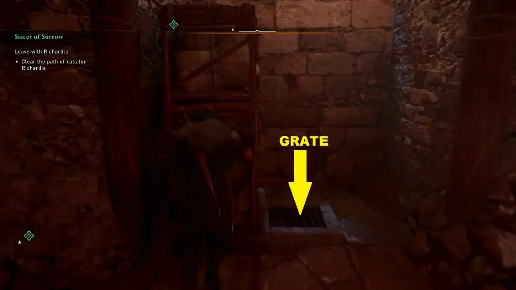 After assassinating Little Mother, you will have to escape with Richardis. Follow Richardis until you come to an area with Rat Swarms. You can use Odin’s Vision to see the rat swarms. Rat swarms cannot be damaged or killed. Repeal them by attacking them with your weapon. Rats may flee to nearby sewer grates when repelled. Cover grates with pushable objects to trap them. The sewer grate here is behind a destructible wooden barricade as shown in the picture below. repel the rat swarm to the sewer grate using your weapons and then use the pushable object to cover the grate.