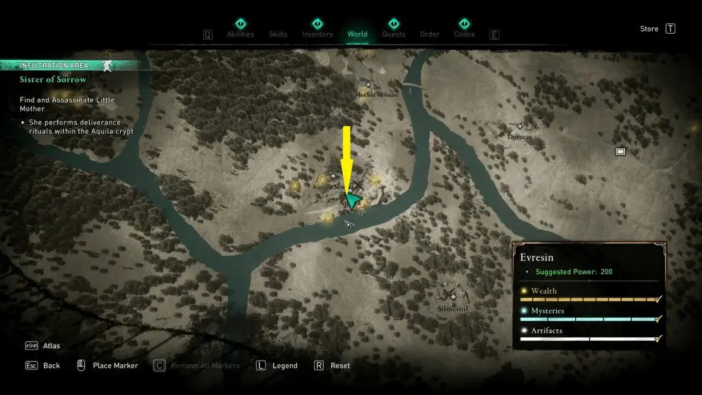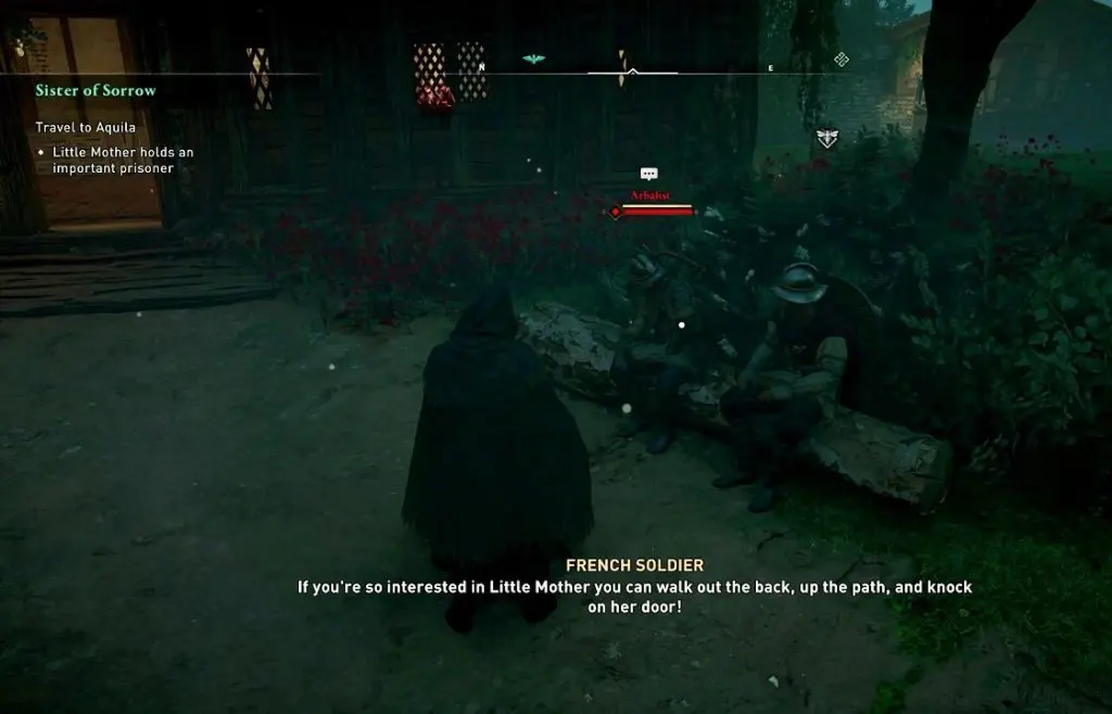 The first objective as the quest starts is to ‘Travel to Aquila’. Another sub-objective will be to talk to the Revelers in St. Taurinus Tavern as they may know more about the Little Mother. The tavern is the building opposite to the Chapel in Evreux. Enter the tavern and talk to the tavernkeeper, who will tell you to talk to Bastian to know about the Little Mother. Sit and talk with Bastian for useful information. He will tell you that The Little mother holds a special prisoner with her.