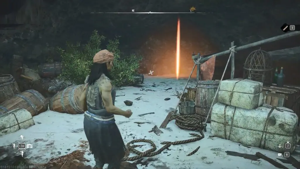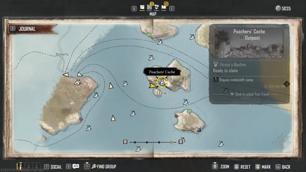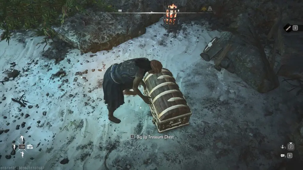 Sail to the Poacher’s Cache Outpost. When you disembark from your boat, proceed to the outpost and check behind the tents. You’ll see a ray of light revealing the position of the buried treasure. Approach it and dig up the treasure to obtain the chest.