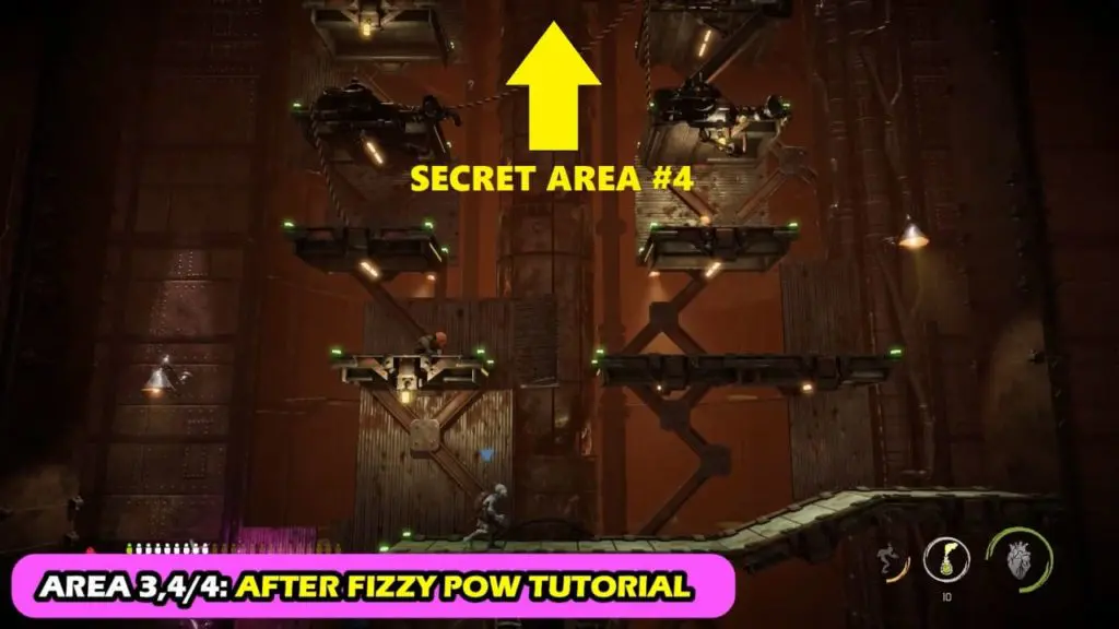 You can find this Secret area after the ‘Fizzy Pow’ Tutorial. The secret area is behind metal sheets (see image)