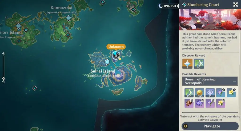 ‘Slumbering Court’ is the new Domain introduced in Genshin Impact 2.3 update, released on 24th November 2021. Slumbering Cort is at the northern portion of Seirai Island as shown in the picture below. This guide shows how to reach the SLumbering Court entrance to unlock it.