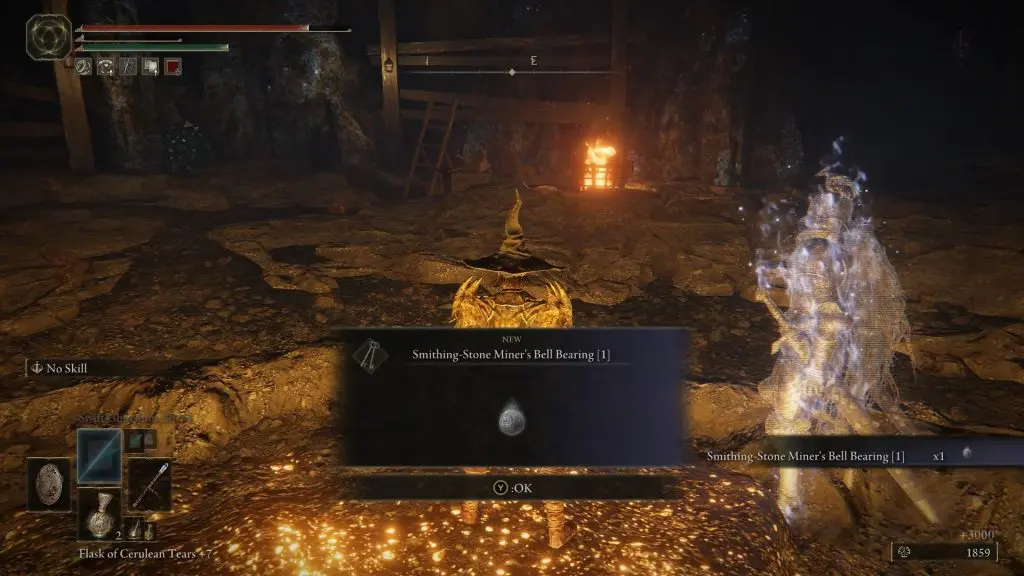 Enter the tunnel and keep going down until you reach Crystalian Boss. Defeat Crystalian and it will drop Smithing-Stone Miner’s Bell Bearing [1].