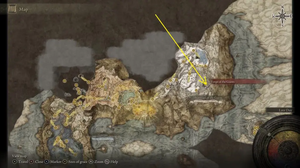 You will find Smithing-Stone Miner’s Bell Bearing [4] towards the very later stage of the game. After you unlock Forge of the Giants, you will be able to teleport to the small island on the southeast end of the map as shown in the picture below.