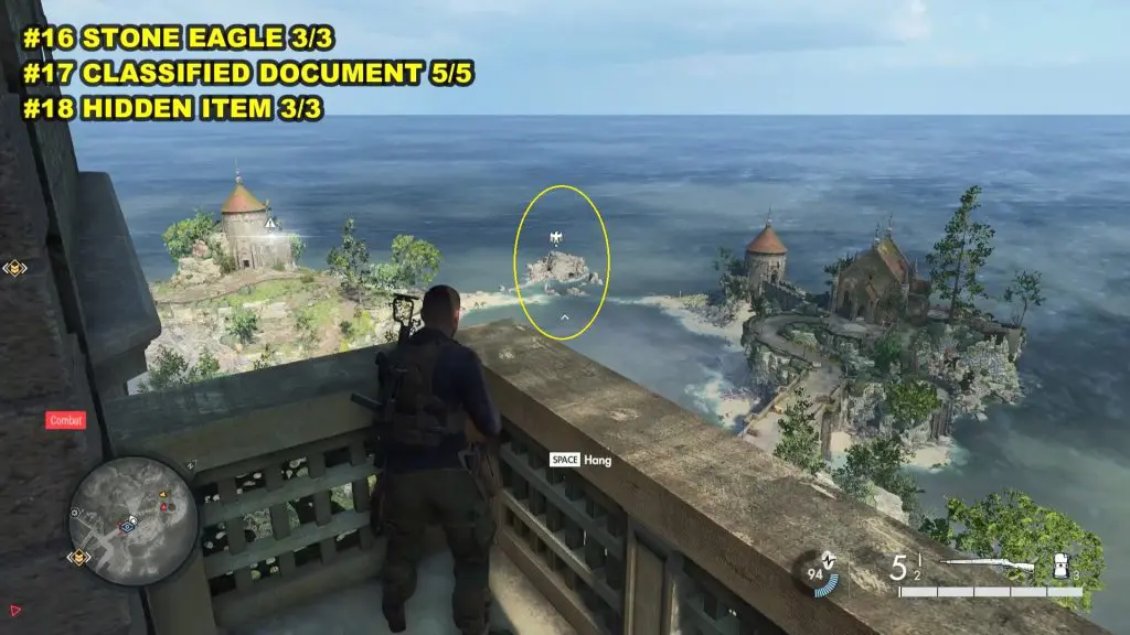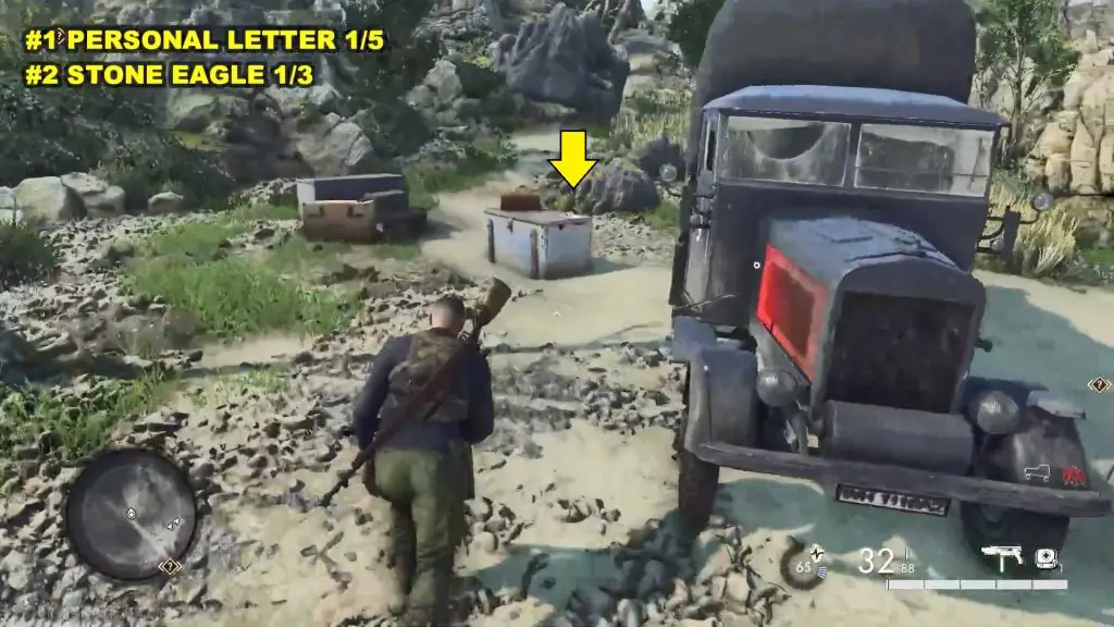 You can shoot the stone eagle either from the main road or from the the sniper nest where you find Personal Letter: It’s Easy Money. I have marked the location on the map below.