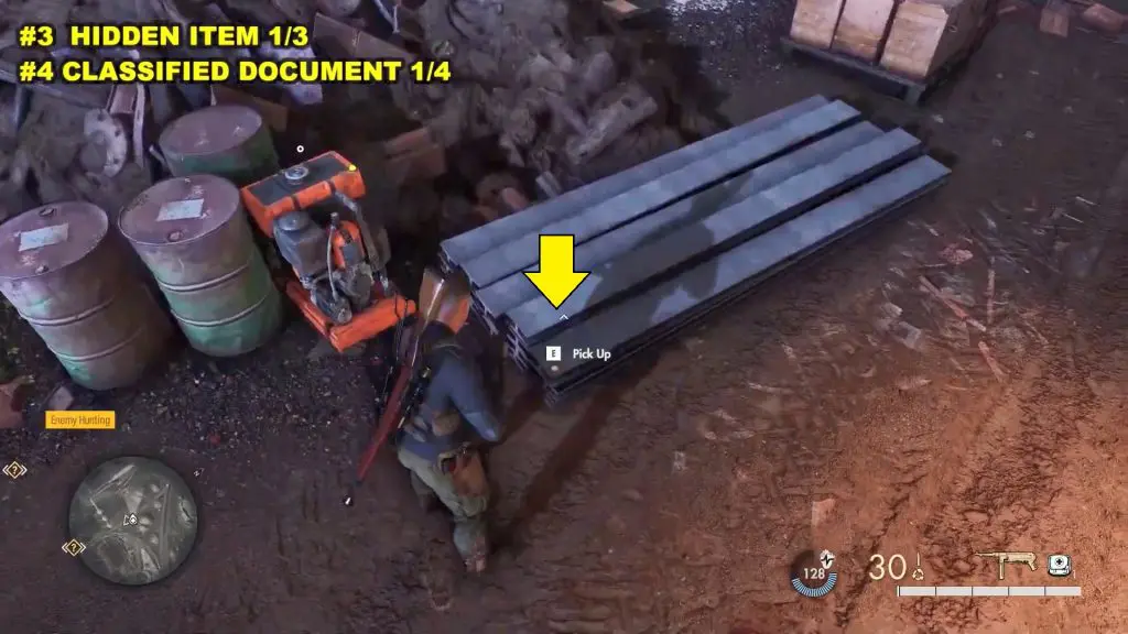 In the central part of the map and east of rail tracks, you will find a building near a wooden watch tower. Go upstairs to collect the documents.