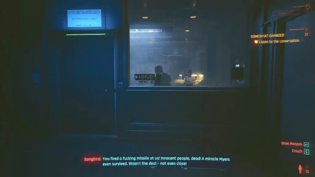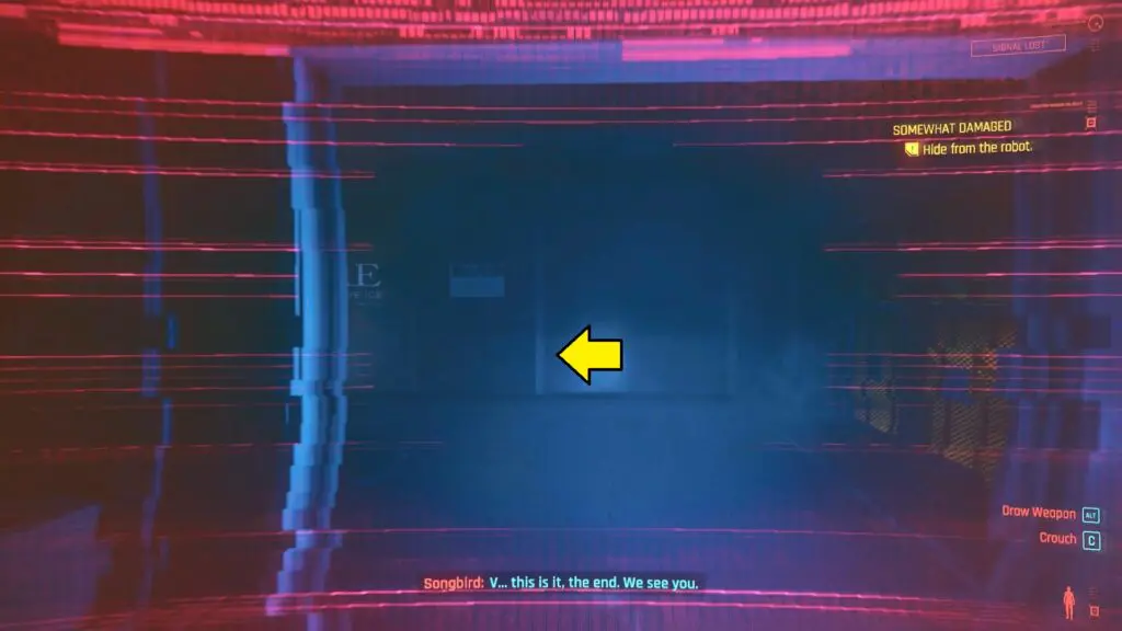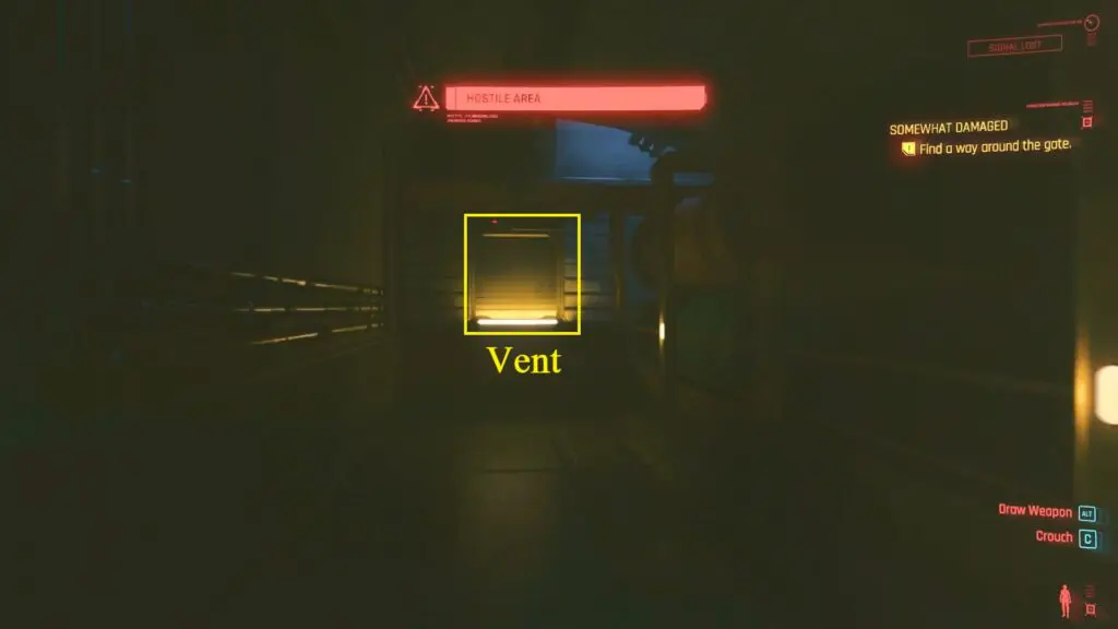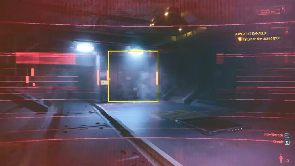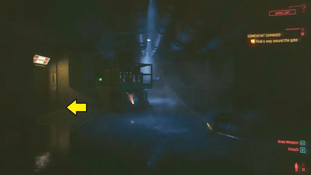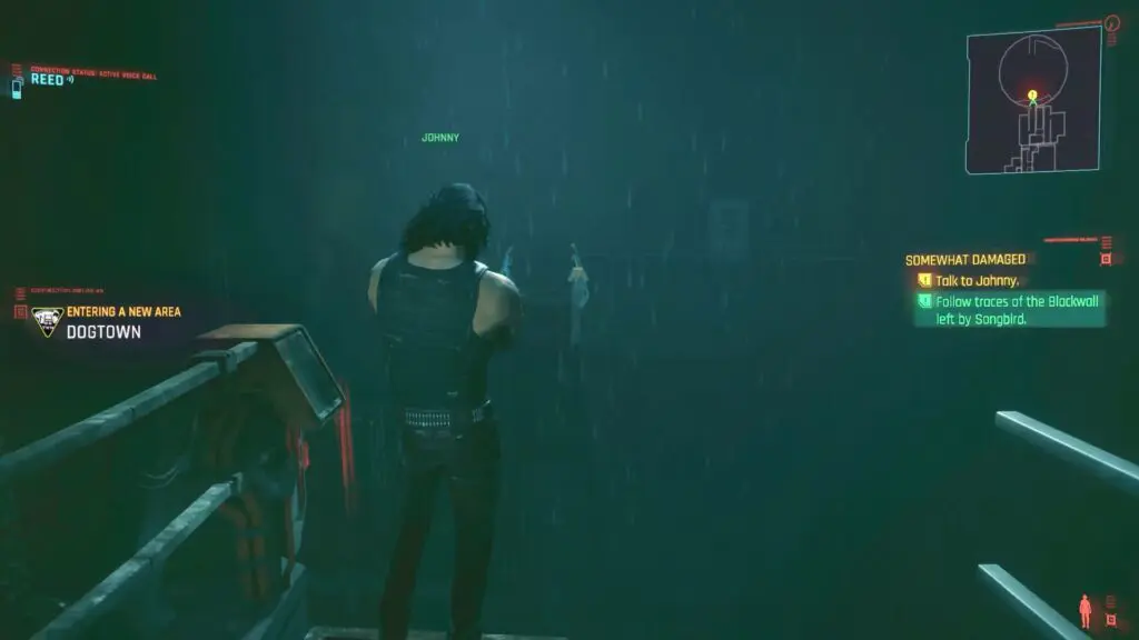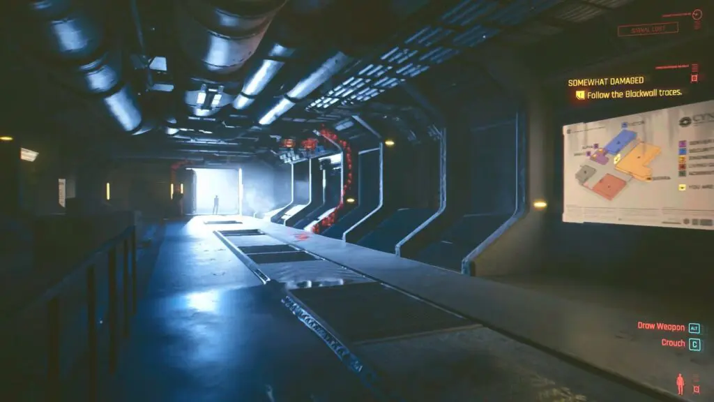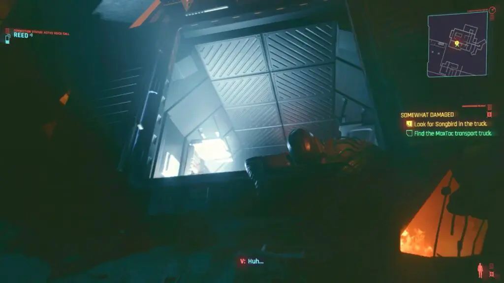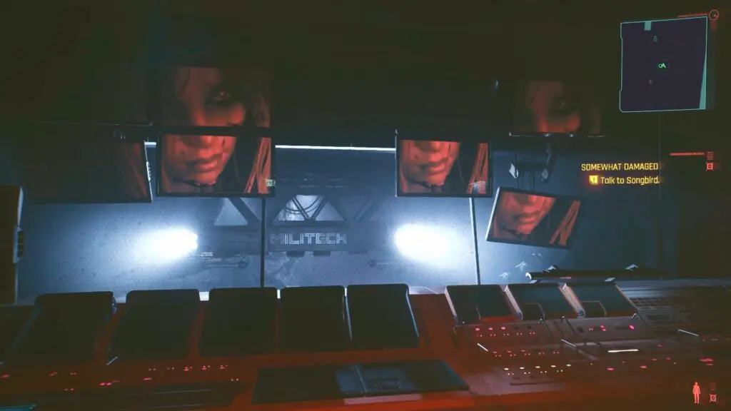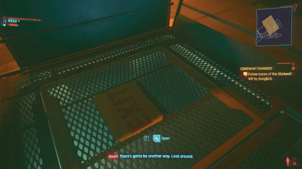 Following the unsuccessful assault on the convoy transporting Songbird, Reed sustains injuries that prevent him from continuing. To initiate the ‘Job: Somewhat Damaged,’ proceed to the Militech facility while following the trace of the truck to find this hole in the wall.