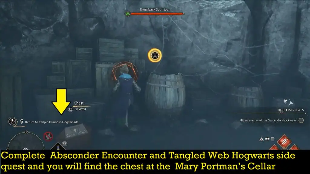 Complete Absconder Encounter and Tangled Web Hogwarts side quest and you will find the chest at the Mary Portman’s Cellar.