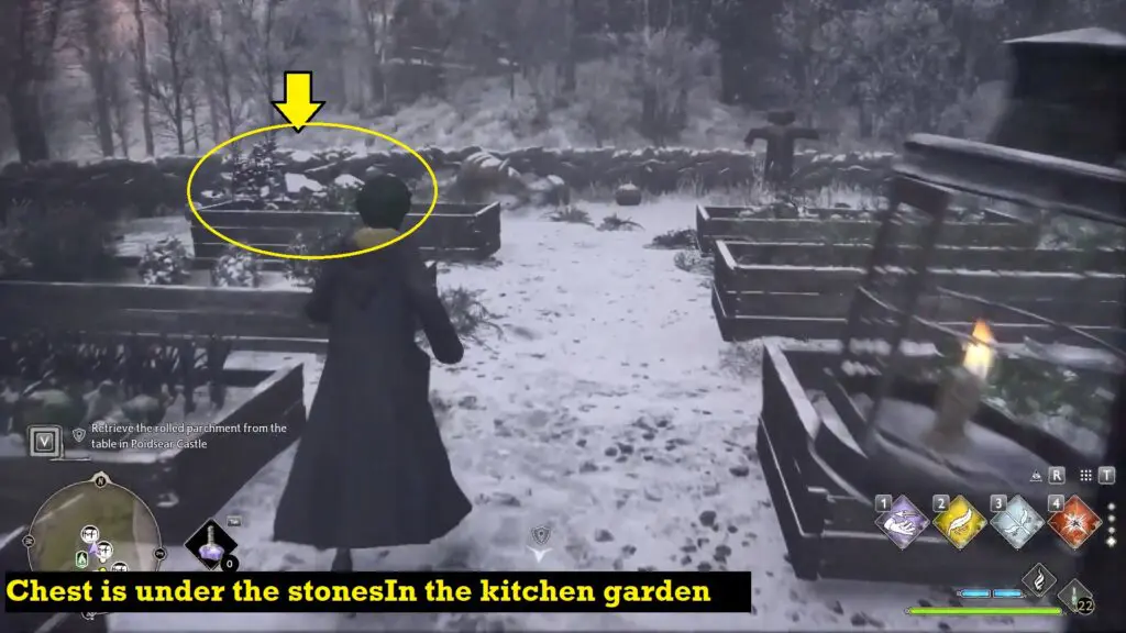 The chest is located in Lower Aranshire. Go into the Vegetable Garden and destroy the stones at the corner of the garden using Confringo Spell. The Chest is located hidden below the Rock.