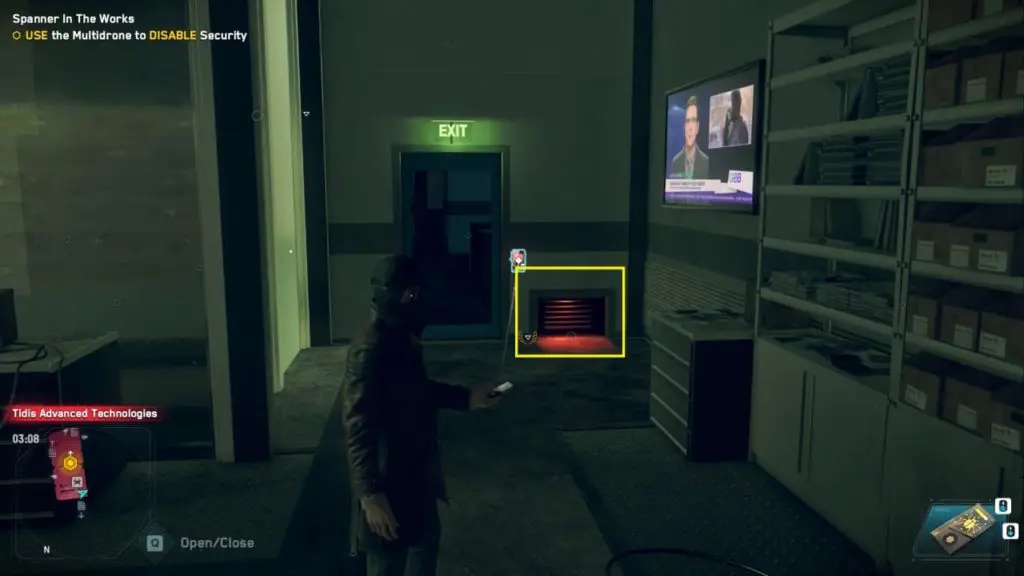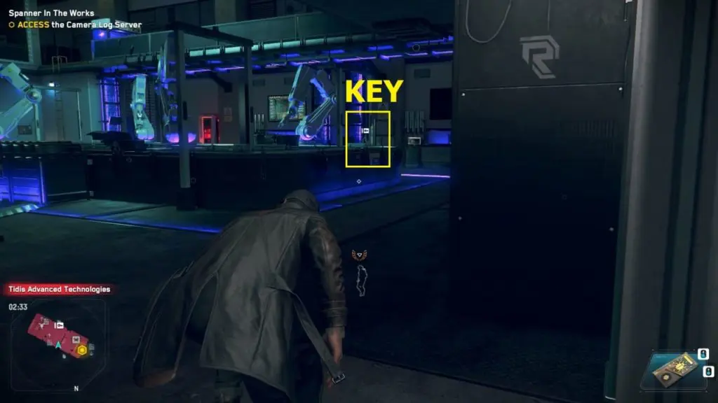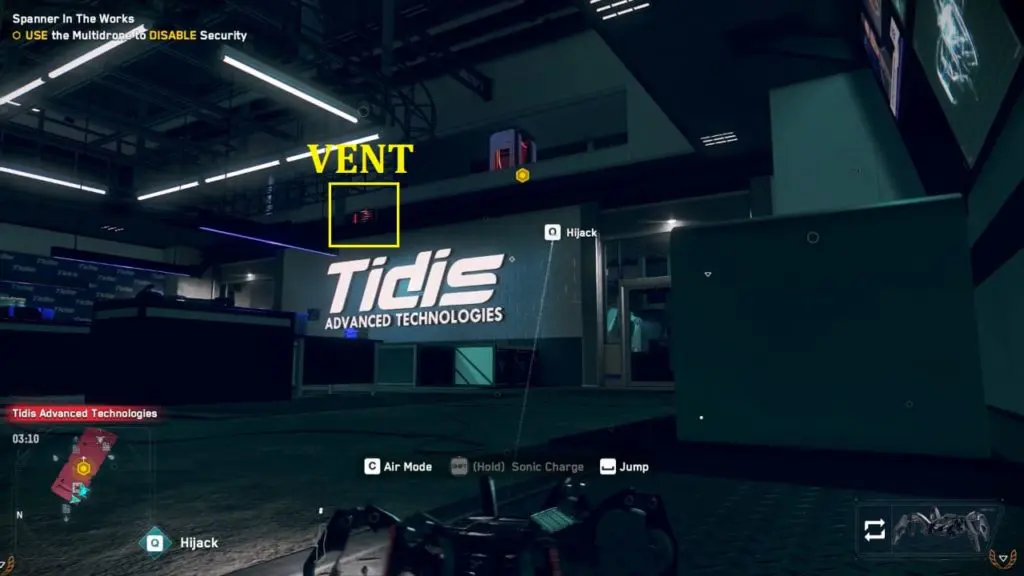 You need to exit the Rempart facility by disabling the security system. You need to hack ctOS to disable the security system is located on the third floor. You can enter the ctOs server room through a small vent located above the ” Tidis Advance Technologies” logo on the second floor’s wall. I have marked it on the image below.