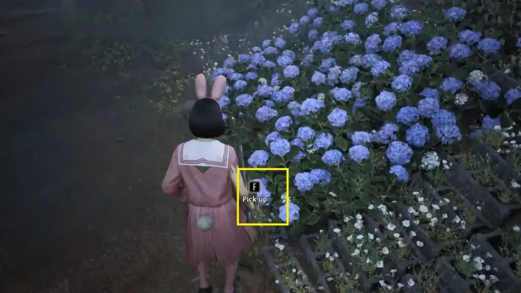 Exit the classroom through the window and head to the west side of the outdoor area. From there, go up the stairs and loop back east until you reach a group of potted blue flowers. Search carefully among them to find the key for the Second Floor.