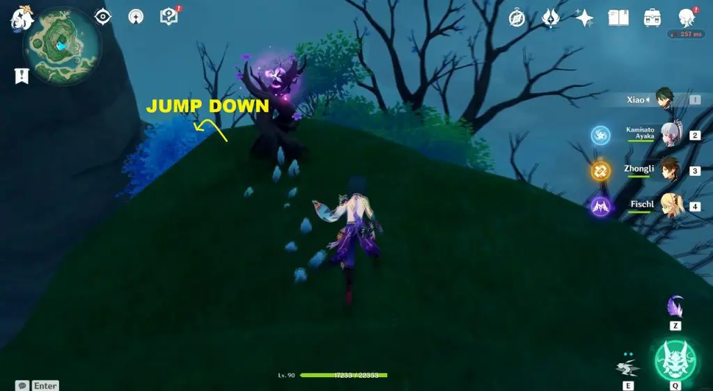 Jump east from the Shirikoro Peak fast travel point and you can the Electro Seelie on your way down as shown below. Chase the Seelie to its court in Oina Beach.