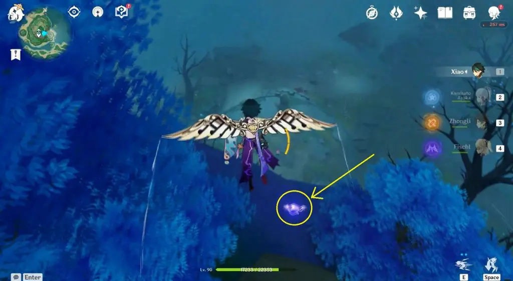 This Seelie is at the highlighted location north of the Ceremonial Site. Chase the Seelie to its court in Oina Beach.