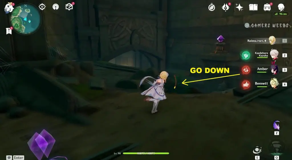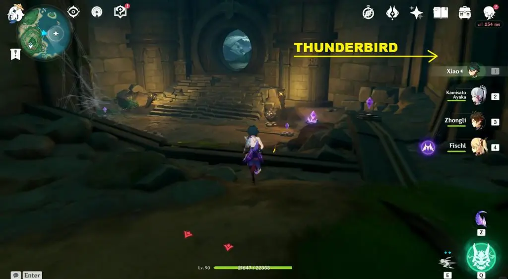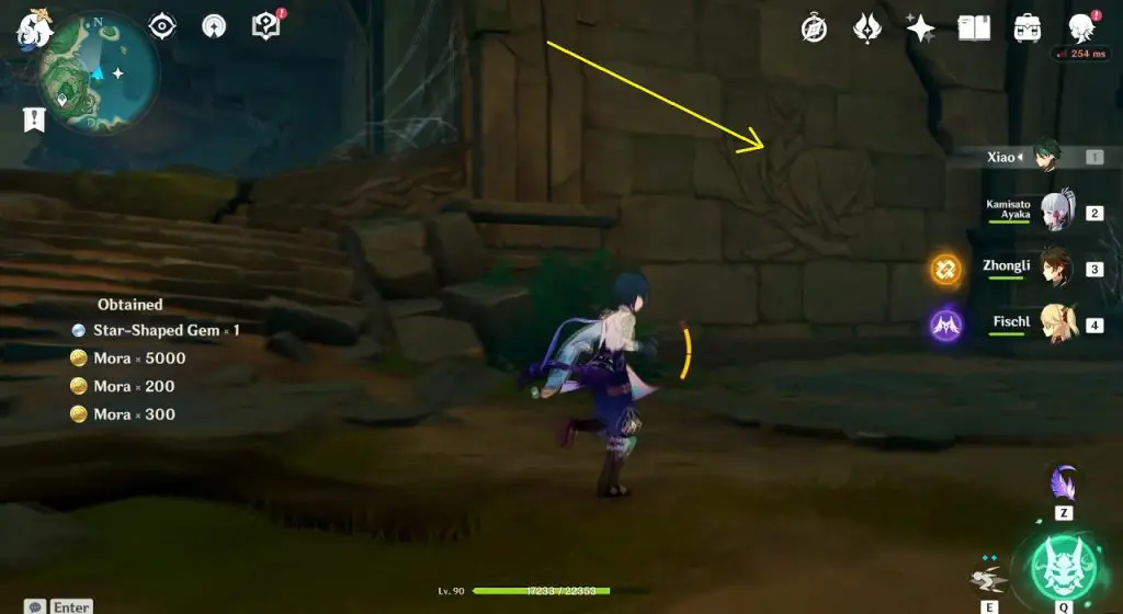 Jump to the Shirikoro Peak underground then move ahead. Before going through the first door, turn right as shown in the second picture below. As you turn right, you can see a Thunderbird picture on the wall. Use the ‘Peculiar Pinion‘ gadget while standing in front of the wall. This will make the wall disappear, revealing a secret room. Go inside the room and open the exquisite chest inside to get a Star-Shaped Gem.