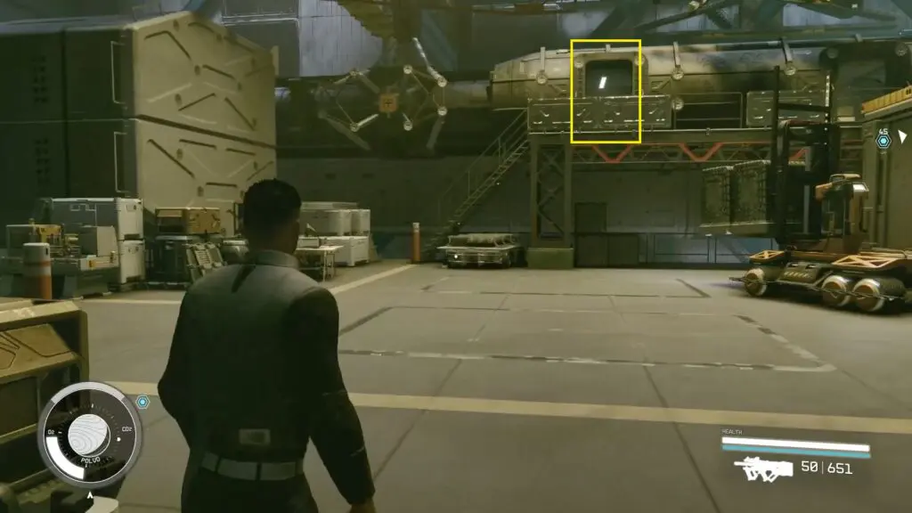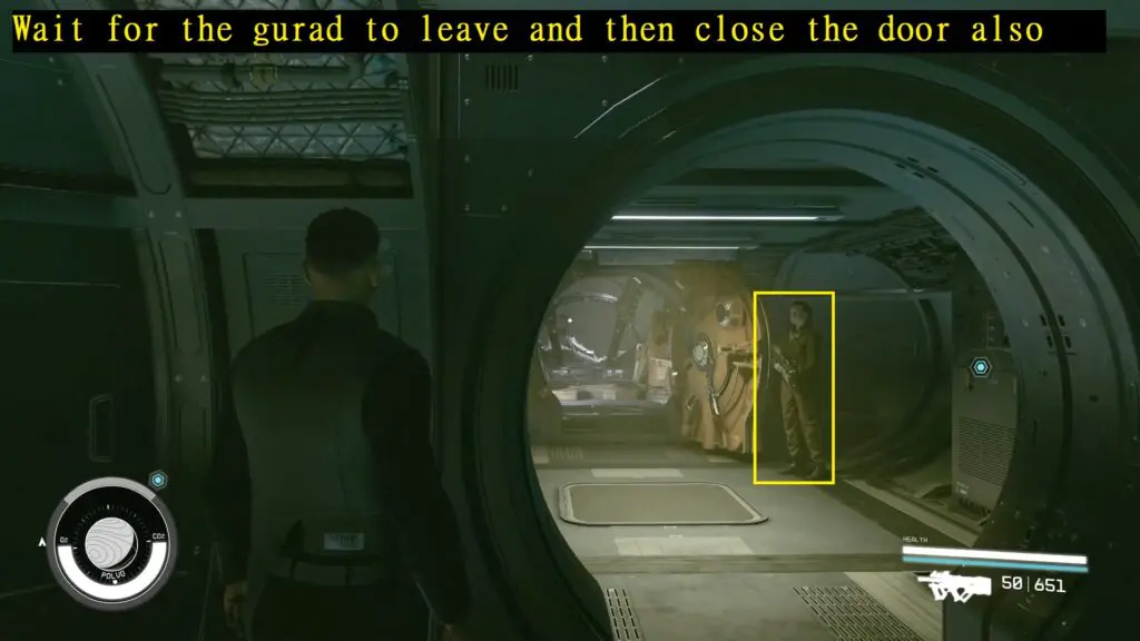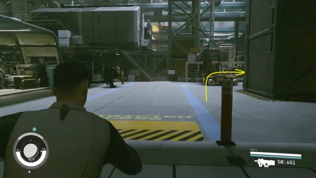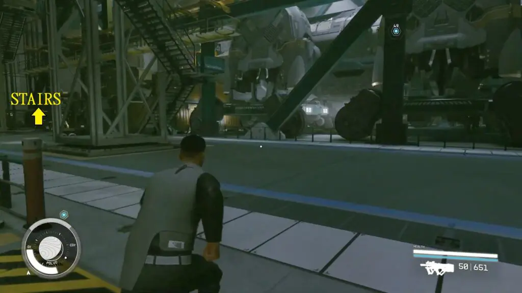 The entrance will lead to HopeTech’s factory’s Industrial Site. There will be guards roaming the ship, so it’s better to avoid drawing their attention. Go close the ship that is being worked on at the Industrial Site.