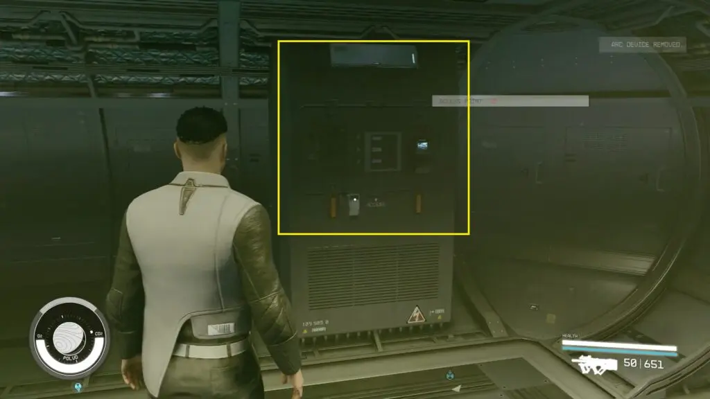 Enter the ship by going up the flight of stairs on the right side. Take the ladder inside the ship to the next floor. The terminal that acts as an access point to plant the ARC Device is just next to it.