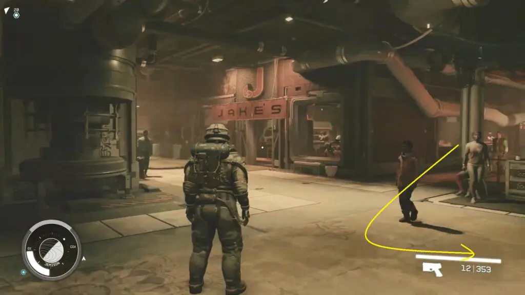 Take a left at the Med Bay to get to Jake’s. This is the location where you first met Louisa.
