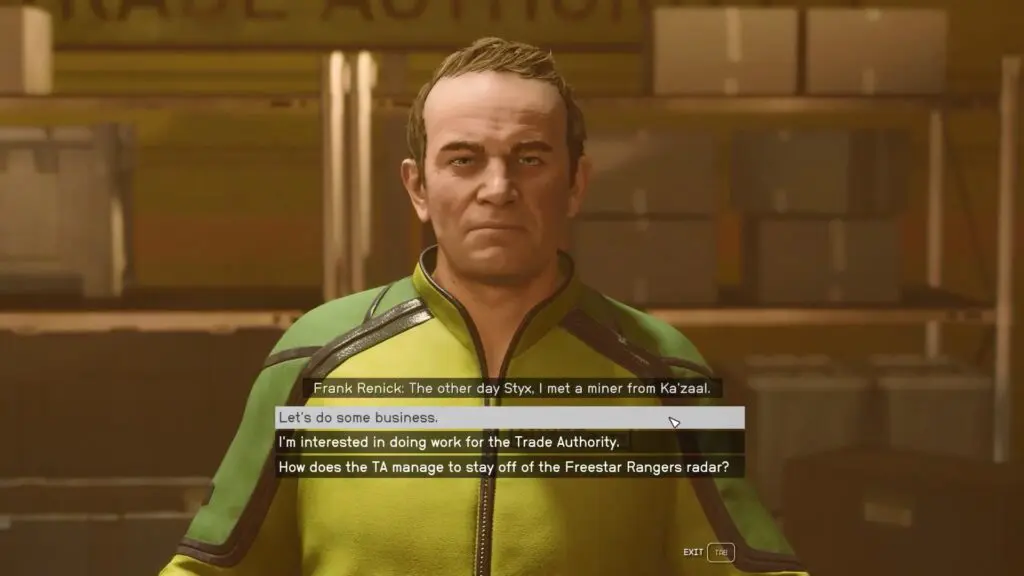 Once players have safely arrived on the planet, they can visit a Trade Authority kiosk. To sell their items, players must locate and talk with a human agent of the Trade Authority.