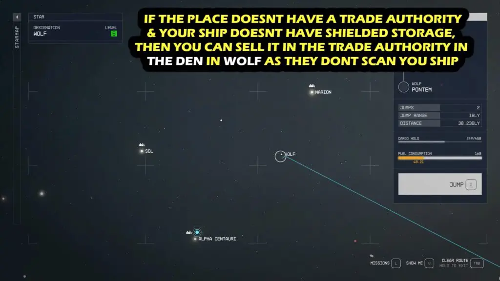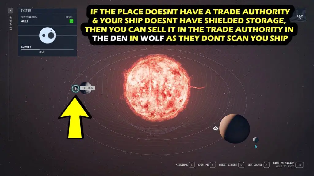 The most convenient and optimal location for trading contraband is The Den, a space station situated within The Wolf system. This system is positioned slightly to the east of Sol and northeast of Alpha Centauri. Remarkably, upon arrival at The Den, you won’t undergo any scanning procedures.