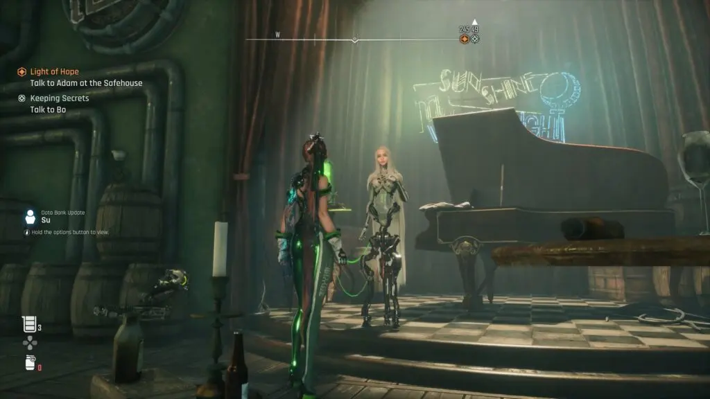 This quest is available after the main mission: Altess Levoire. To start the quest, speak with the NPC (Enya) in The Last Gulp. Refer to the location below. NPC wants the player to find out why Su (NPC) hasn’t come to the bar
