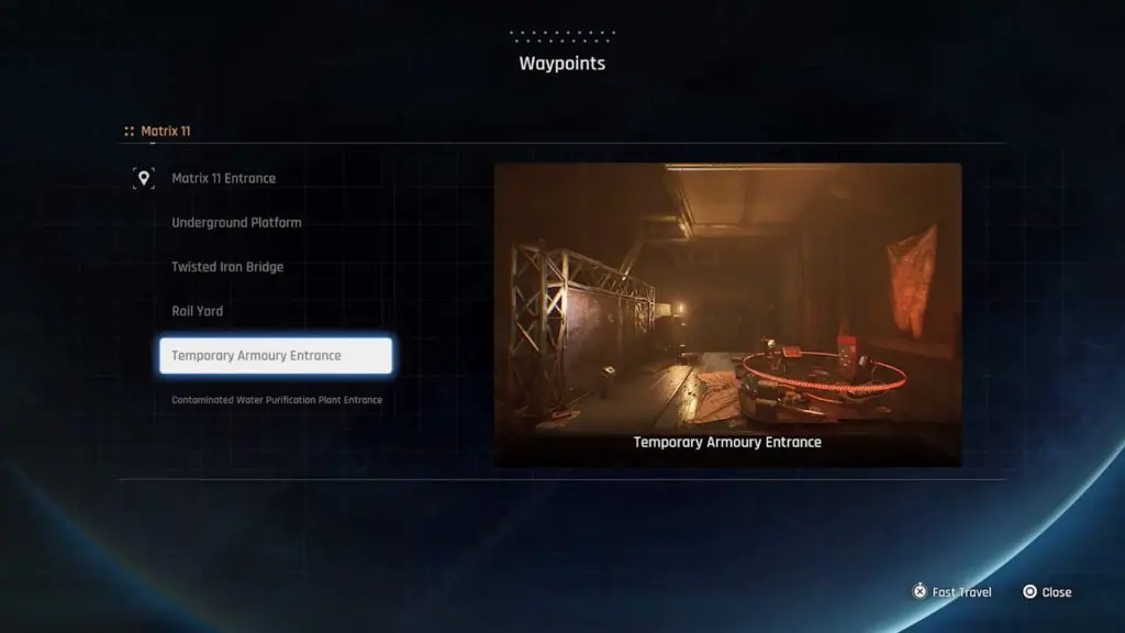 Travel to Matrix 11 and fast travel to Rail Yard which is the closest waypoint.