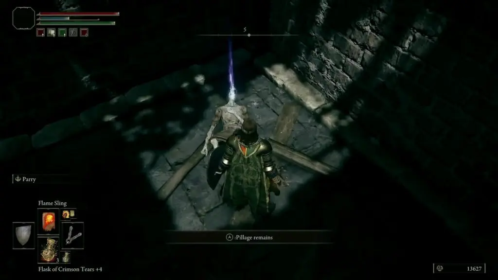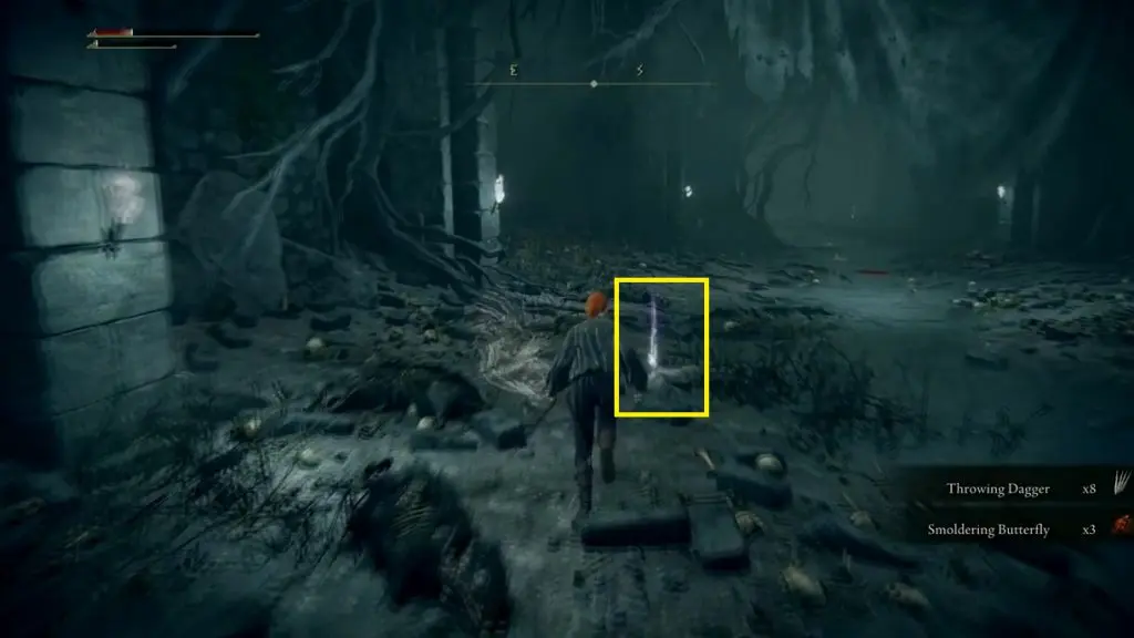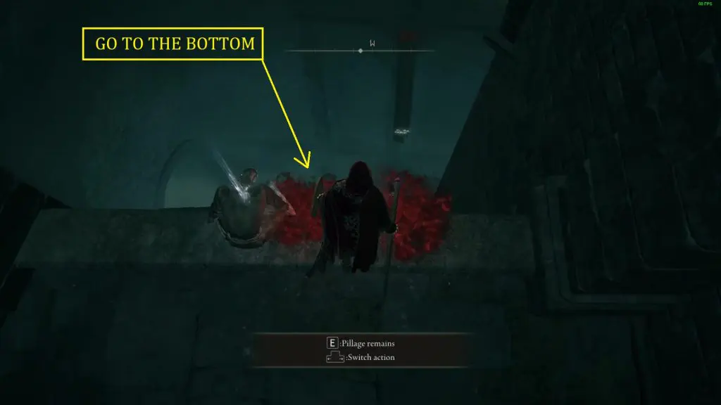 After climbing up the ladder, go straight ahead. Then jump down and go right to get the Stonesword Key from a corpse as shown in the pictures below.